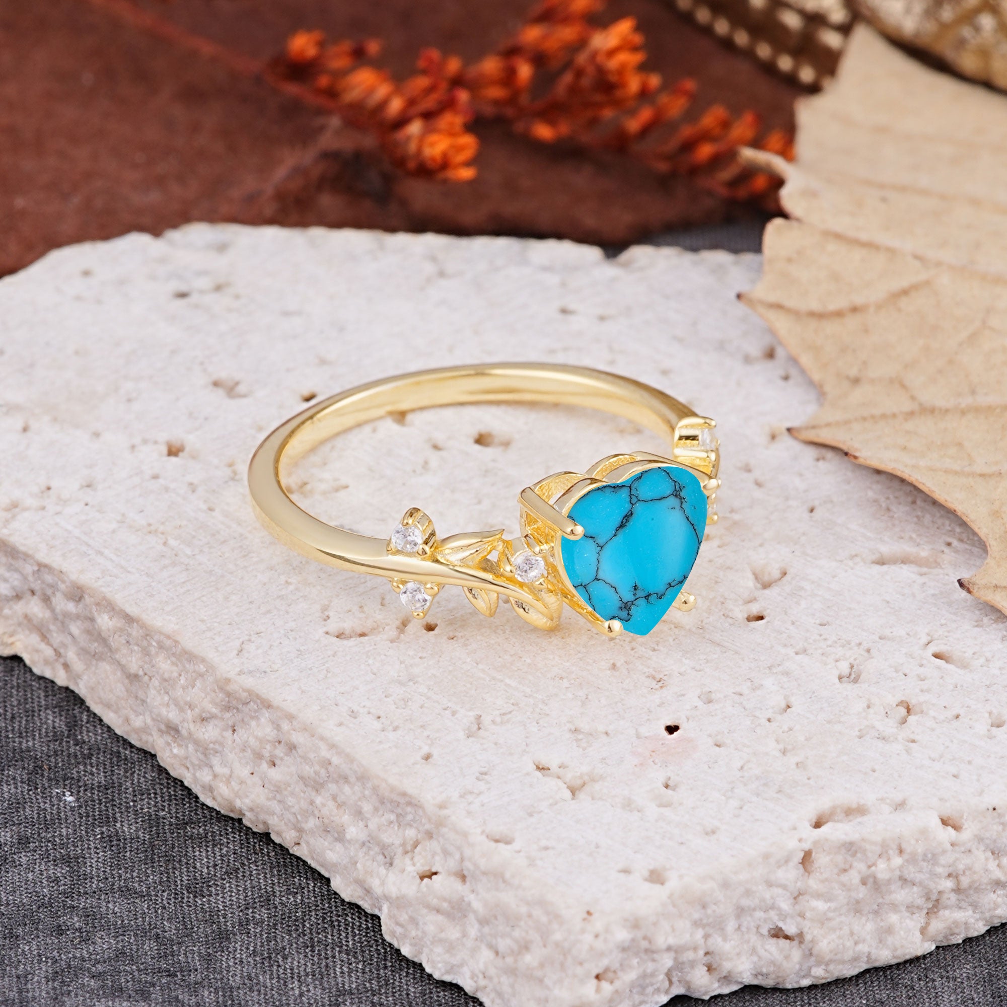 Nature Inspired 4 Prong Heart Shaped Turquoise Wedding Ring