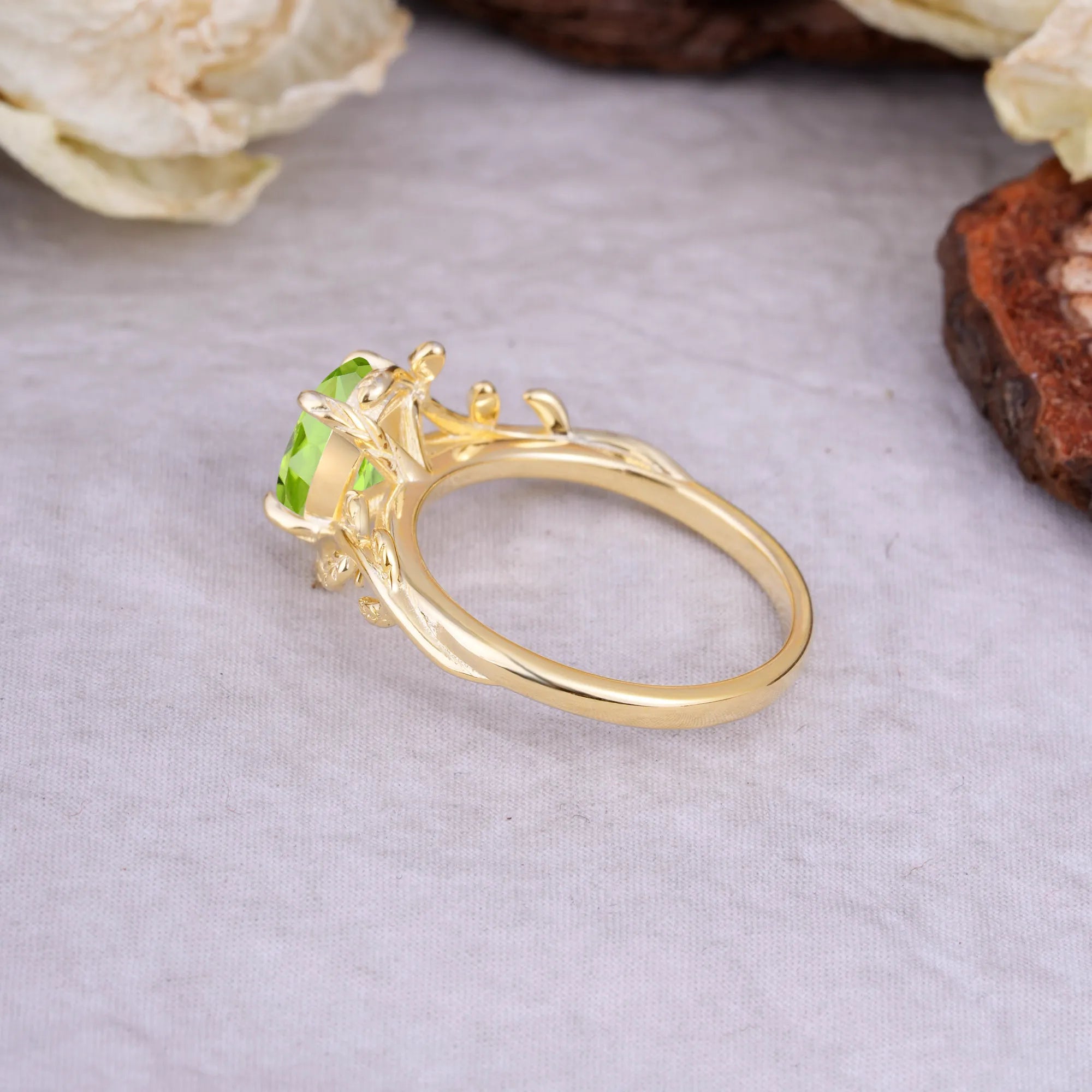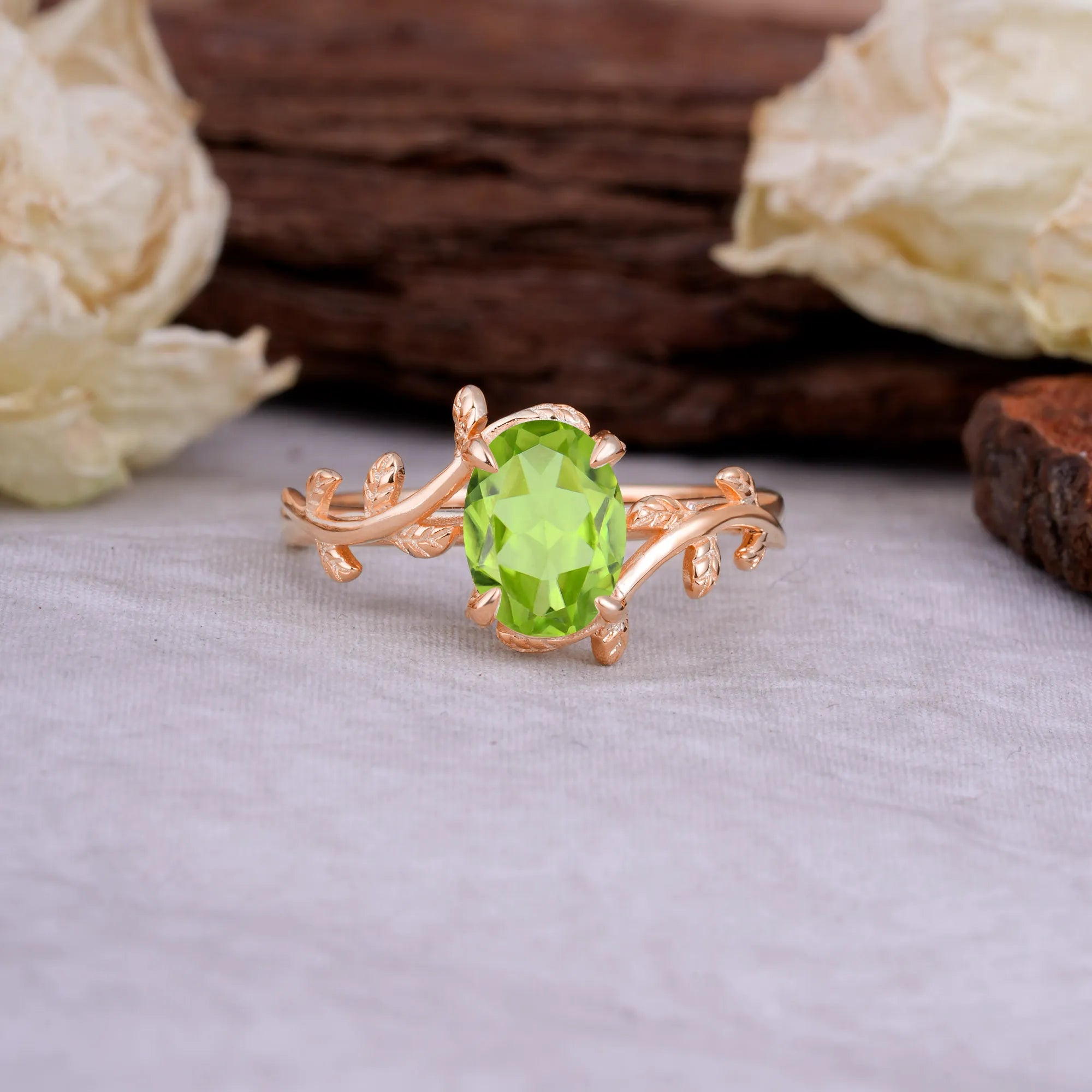 Nature Inspired 4 Prong Oval Cut Peridot Wedding Ring