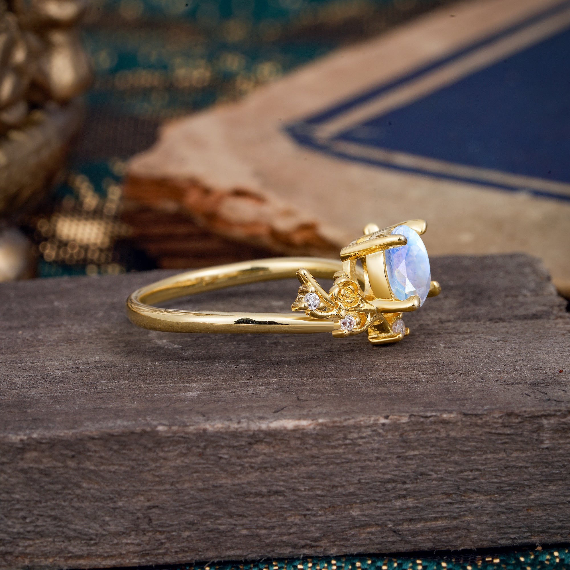 Nature-Inspired 4-Prong Round Moonstone Engagement Ring