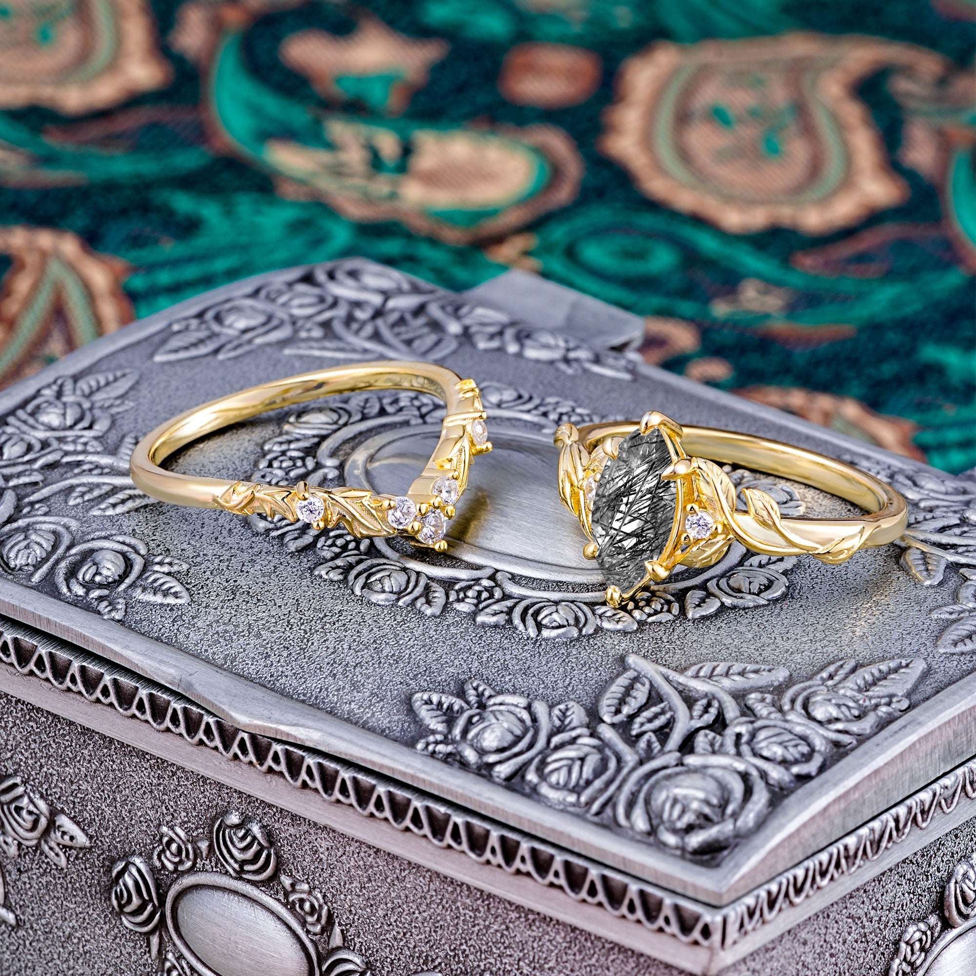 | Stone Material: Black Rutilated Quartz | Stone Material: Moissanite |