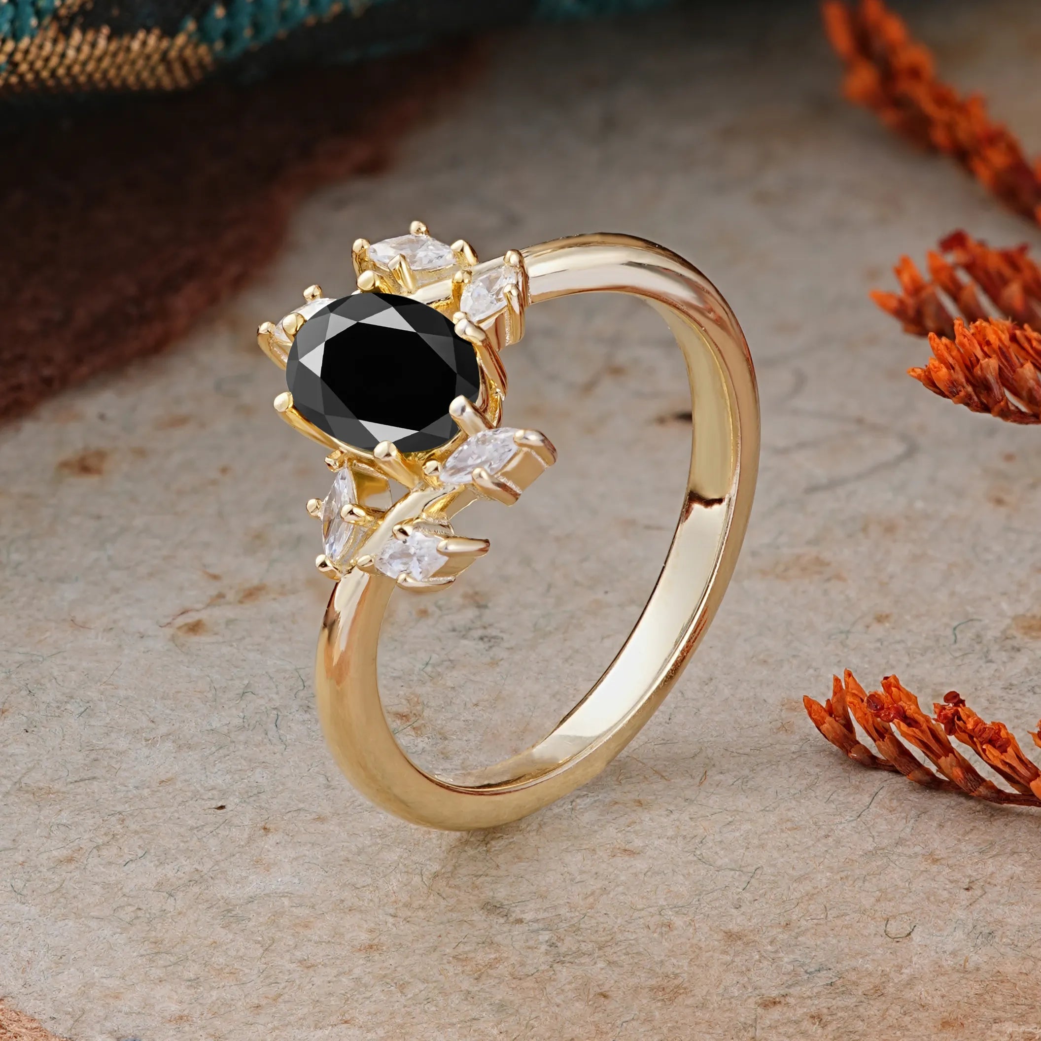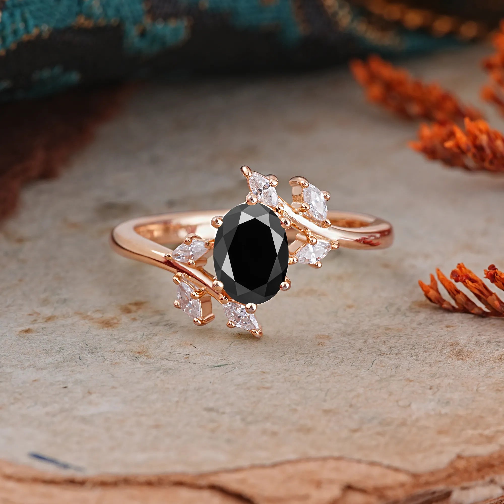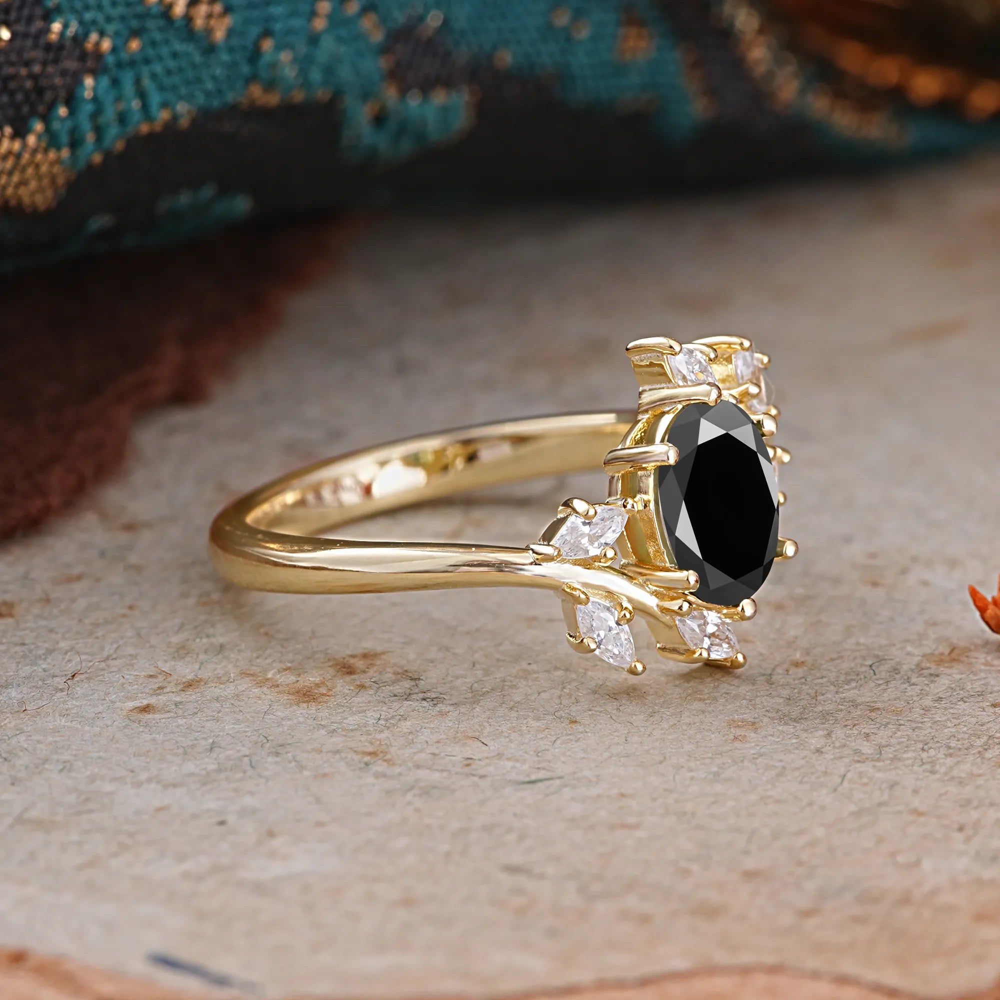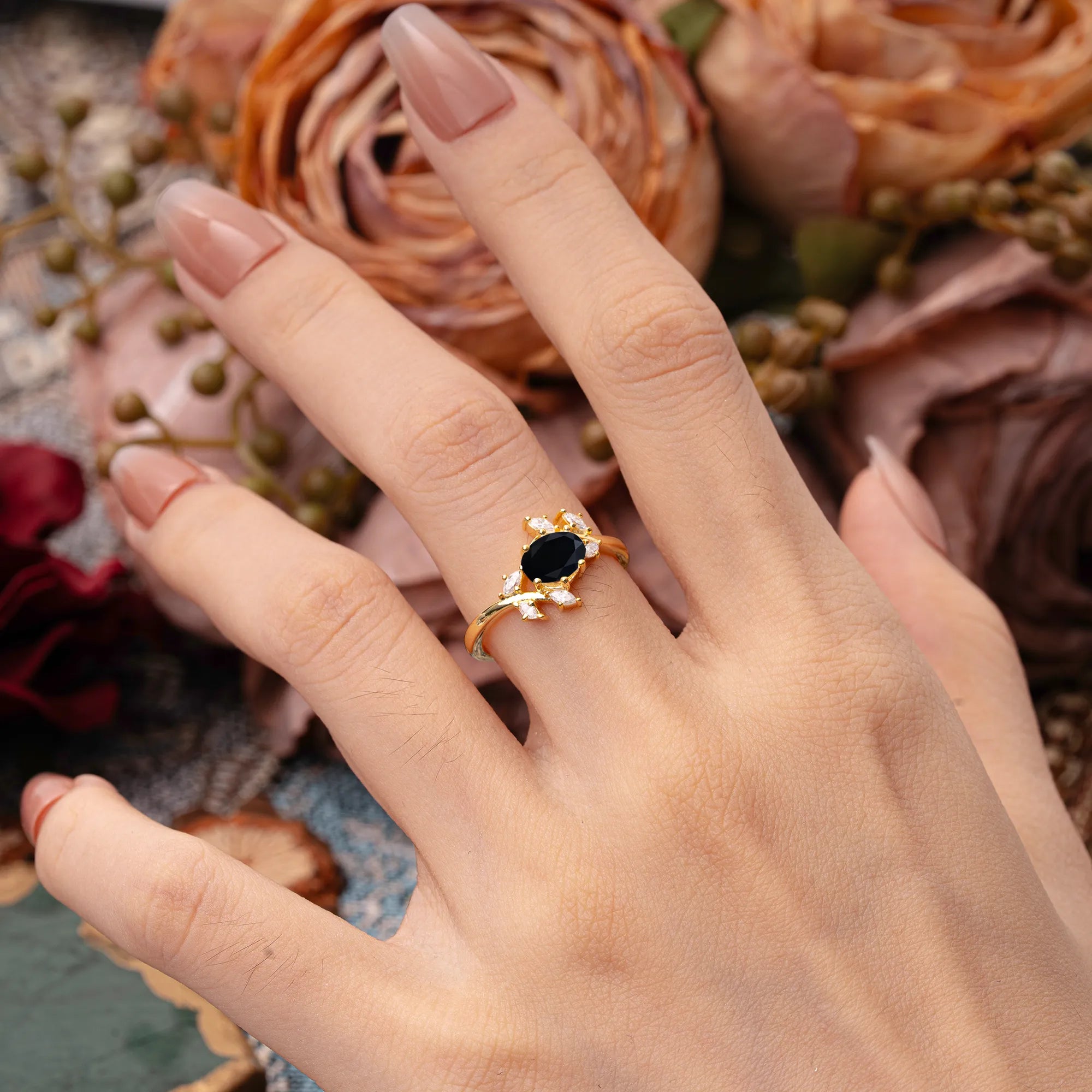 Nature-Inspired 6-Prong Oval Cut Black Onyx Engagement Ring