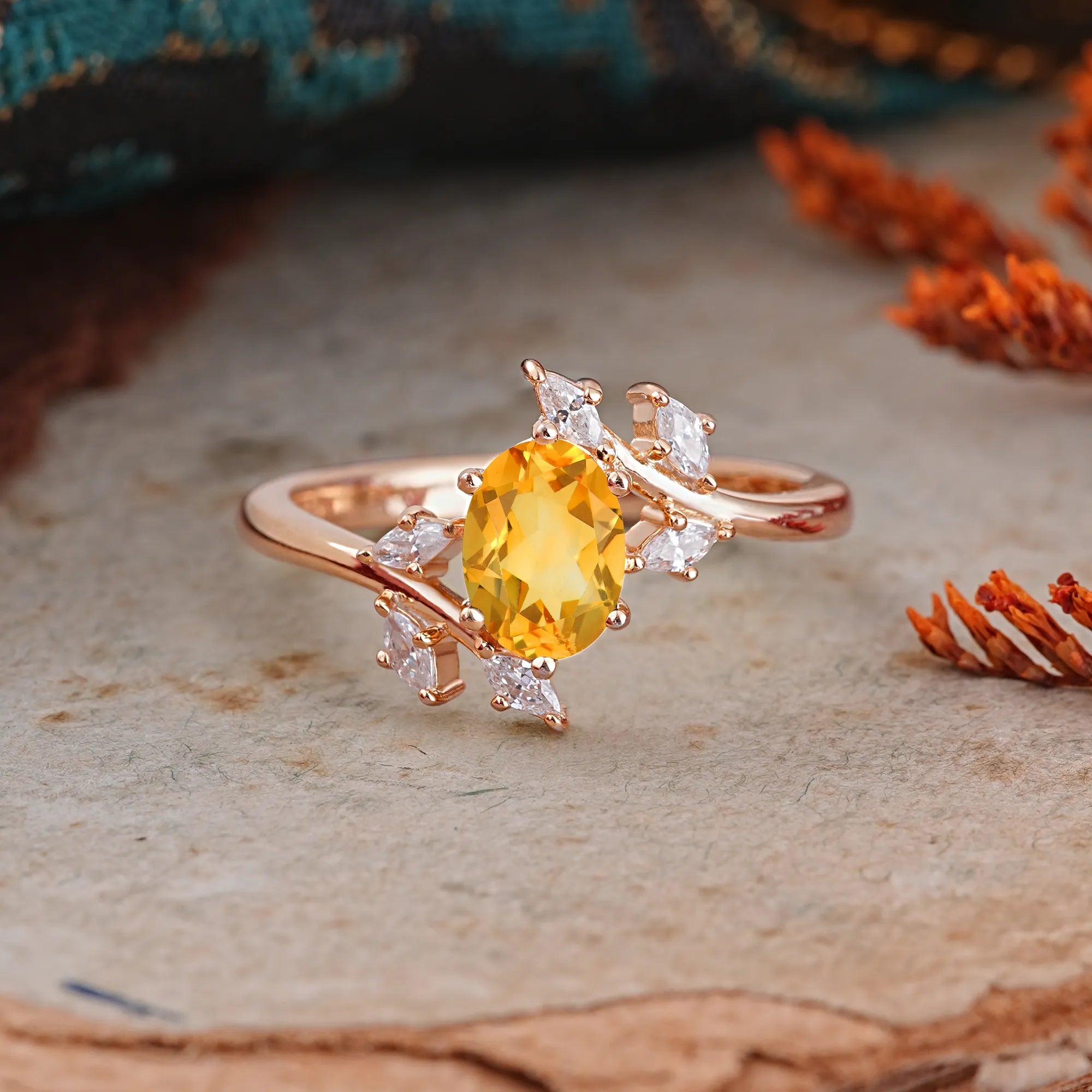 Nature-Inspired 6-Prong Oval Cut Citrine Engagement Ring