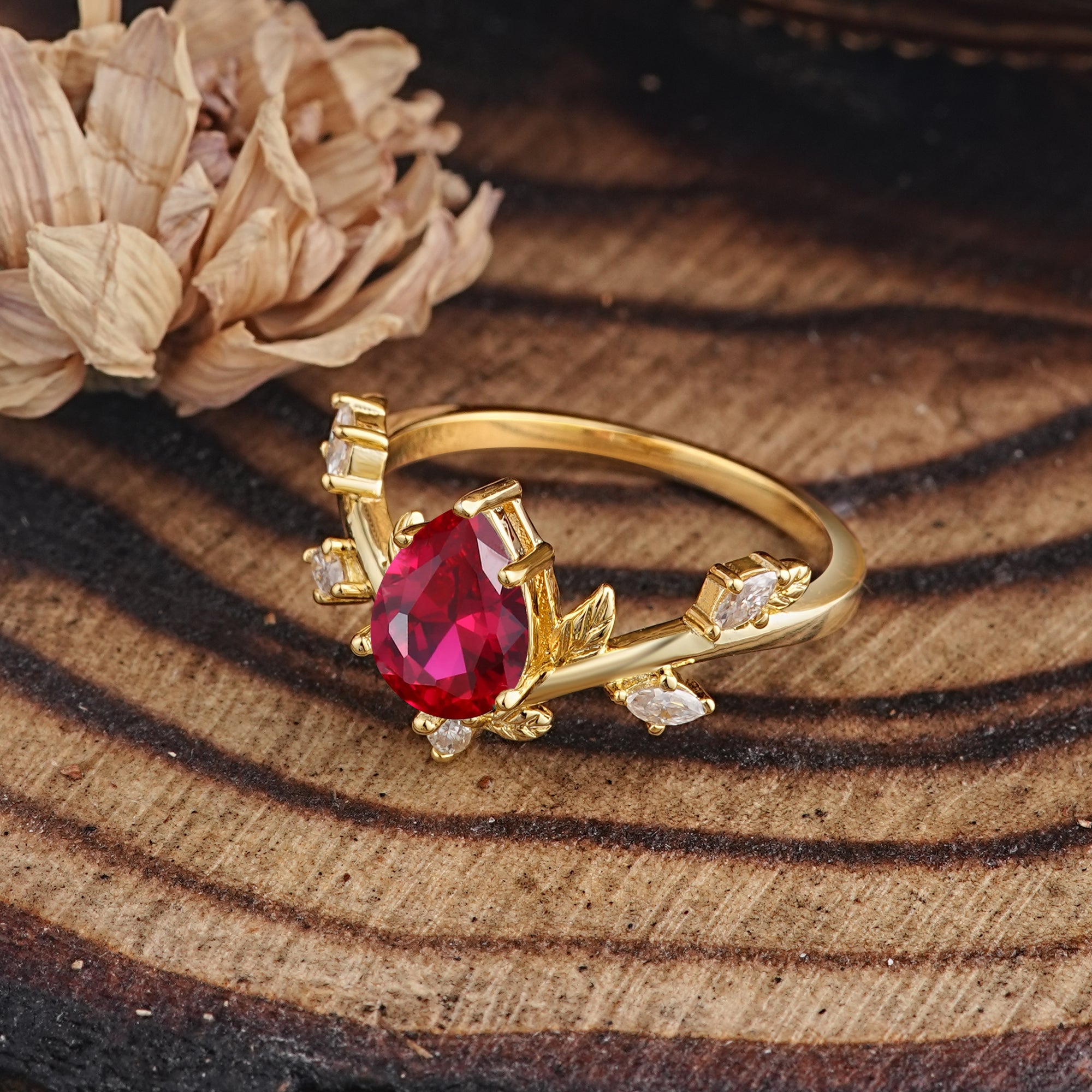 Nature-Inspired 6-Prong Teardrop Ruby Engagement Ring