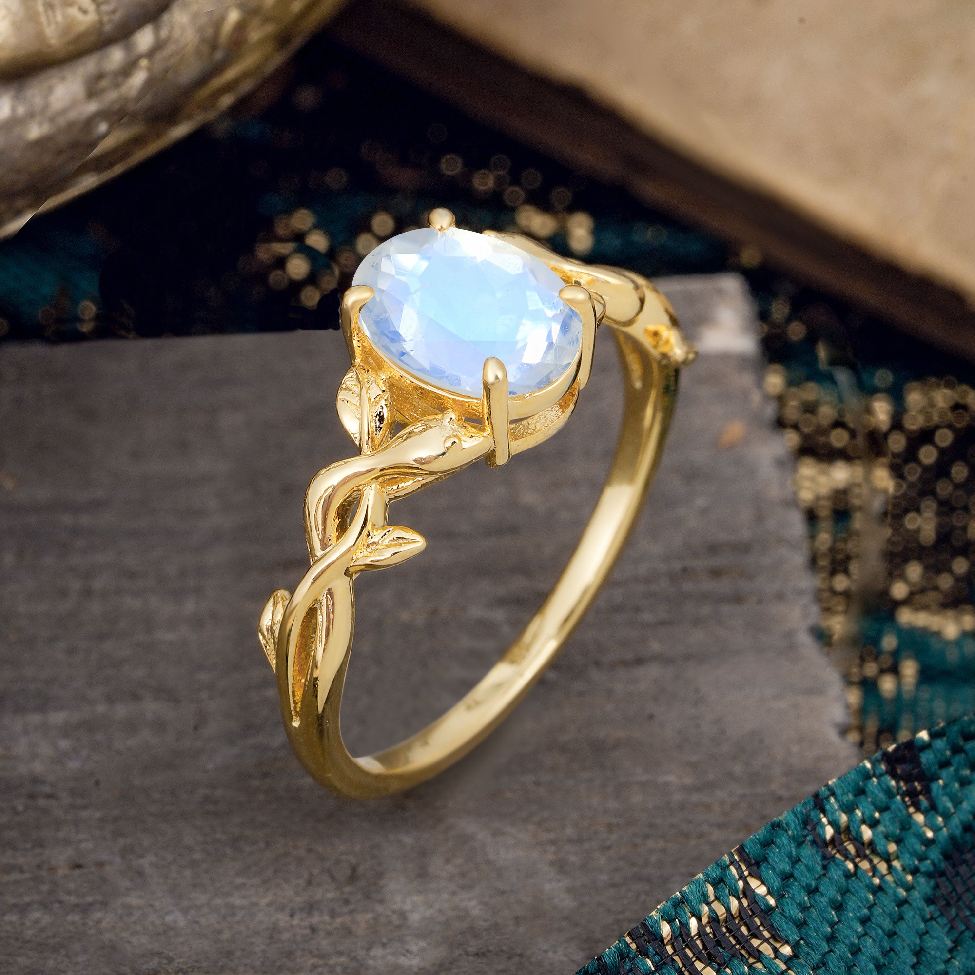 Nature-inspired Botanical Vine Entwined 4-Prong Oval-Cut Moonstone Engagement Ring