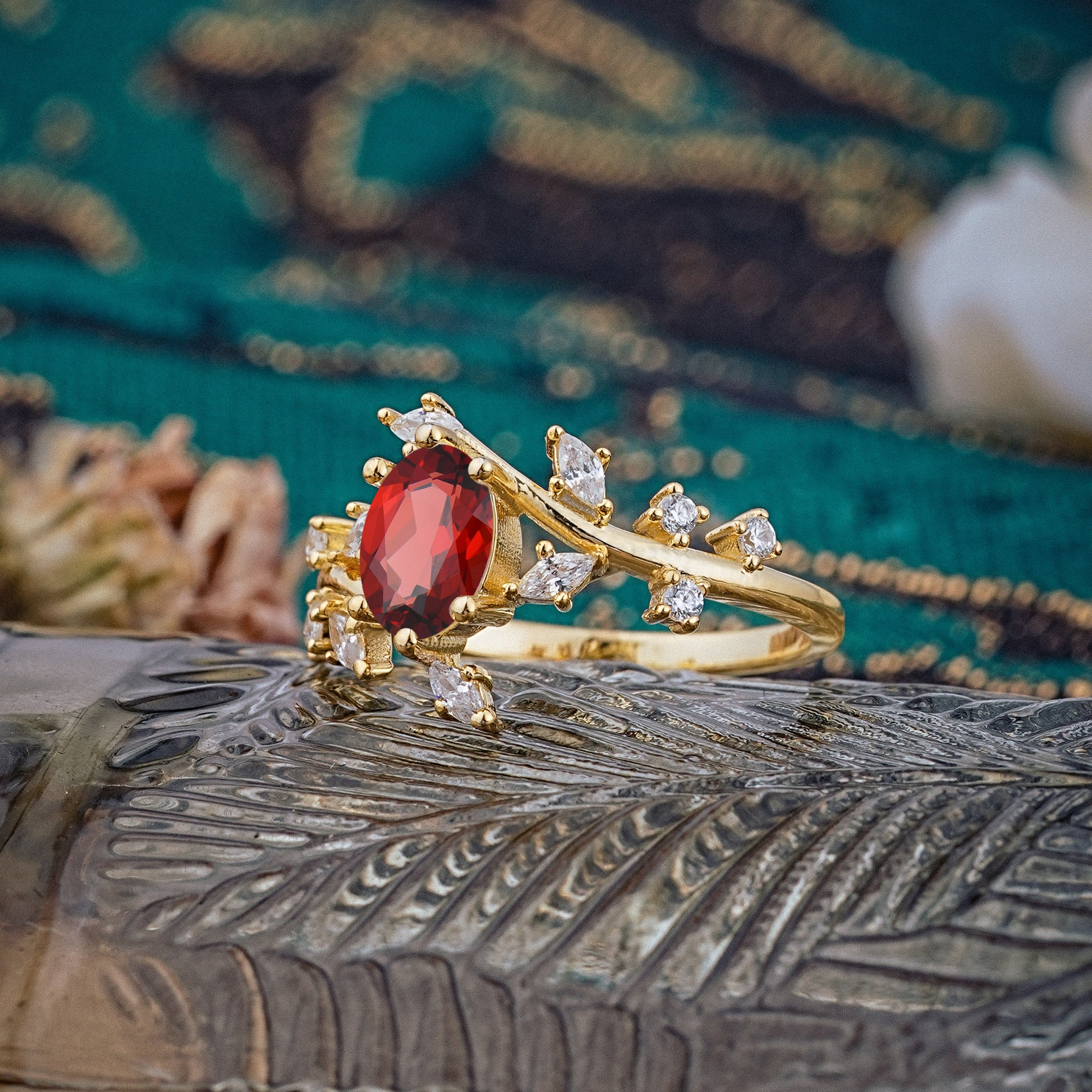 Nature-Inspired Branch 6 prong Oval-Cut Garnet Engagement Ring