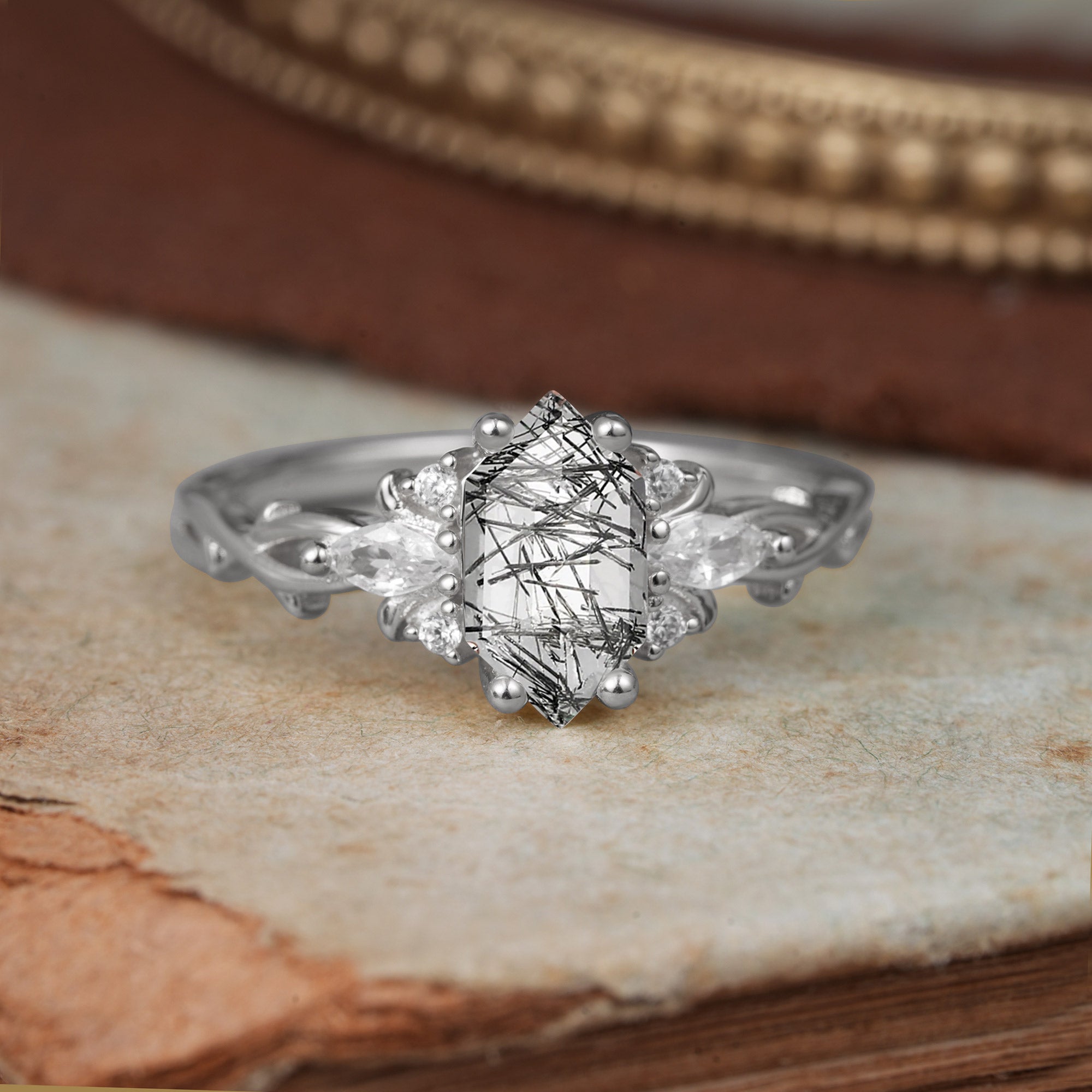 | Stone Material: Black Rutilated Quartz | Stone Material: Moissanite |