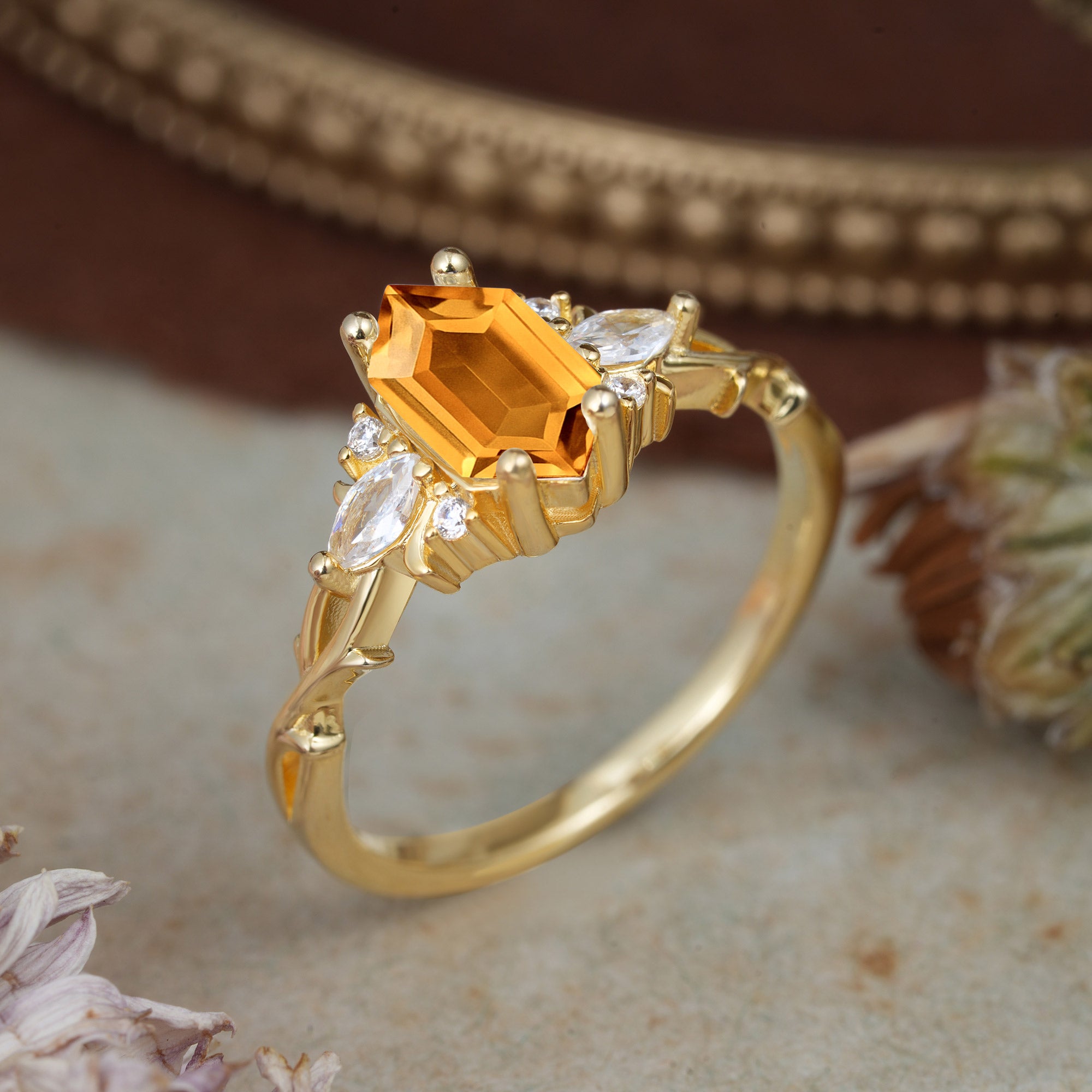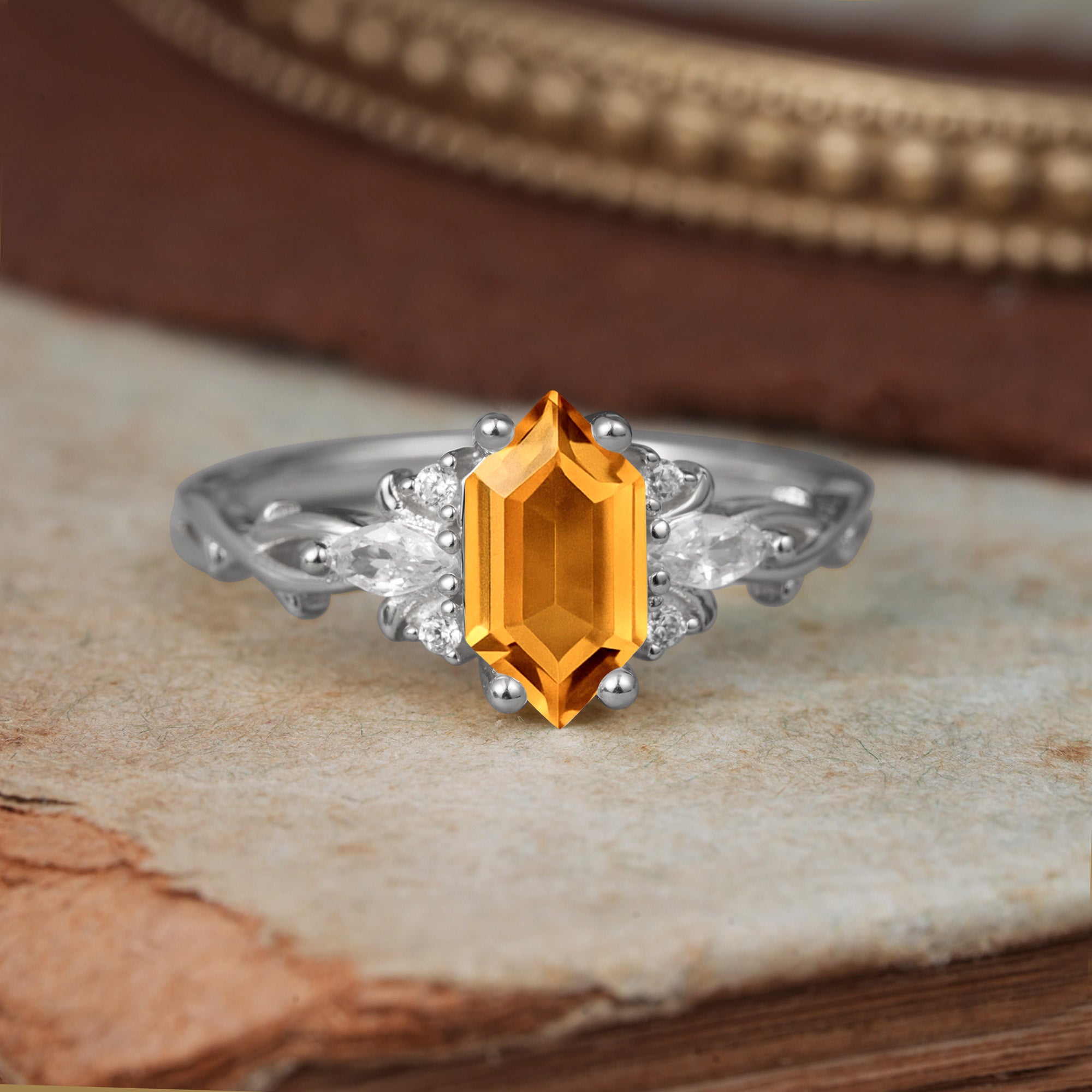 Nature-Inspired Classic 4-Prong Hexagonal-Cut Citrine Engagement Ring