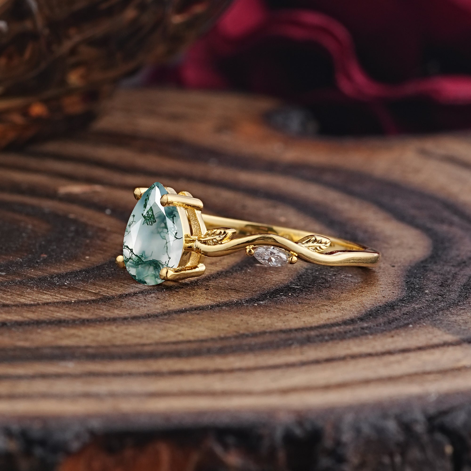 | Stone Material: Moss Agate | Stone Material: Moissanite |