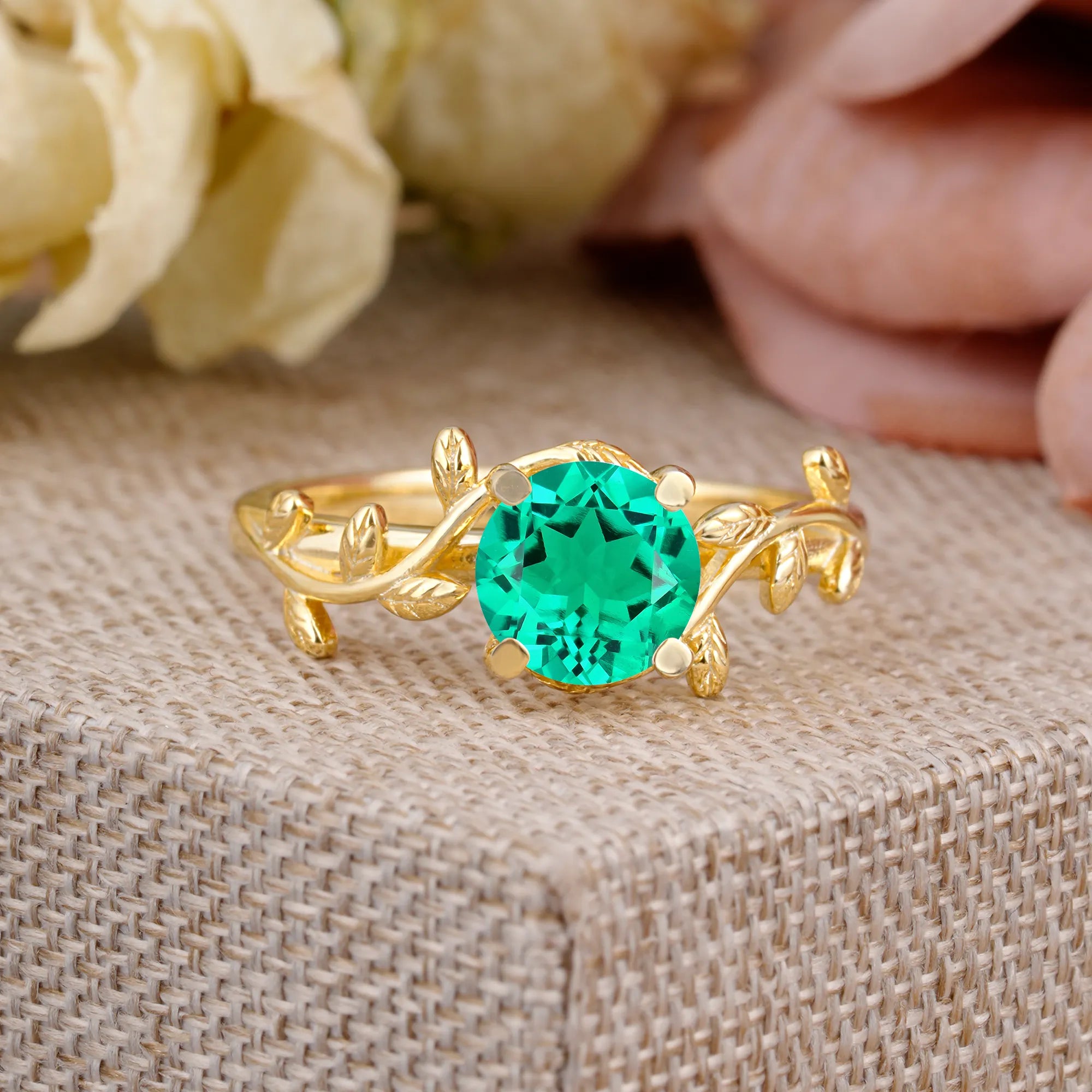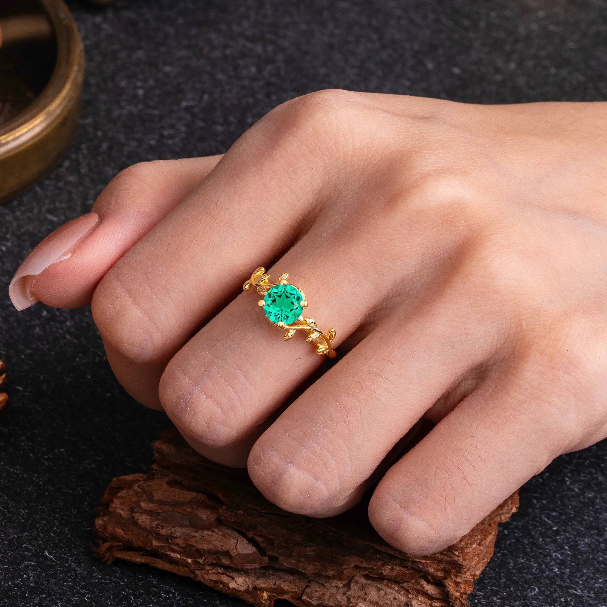 Nature-Inspired Classic 4-Prong Round Emerald Engagement Ring