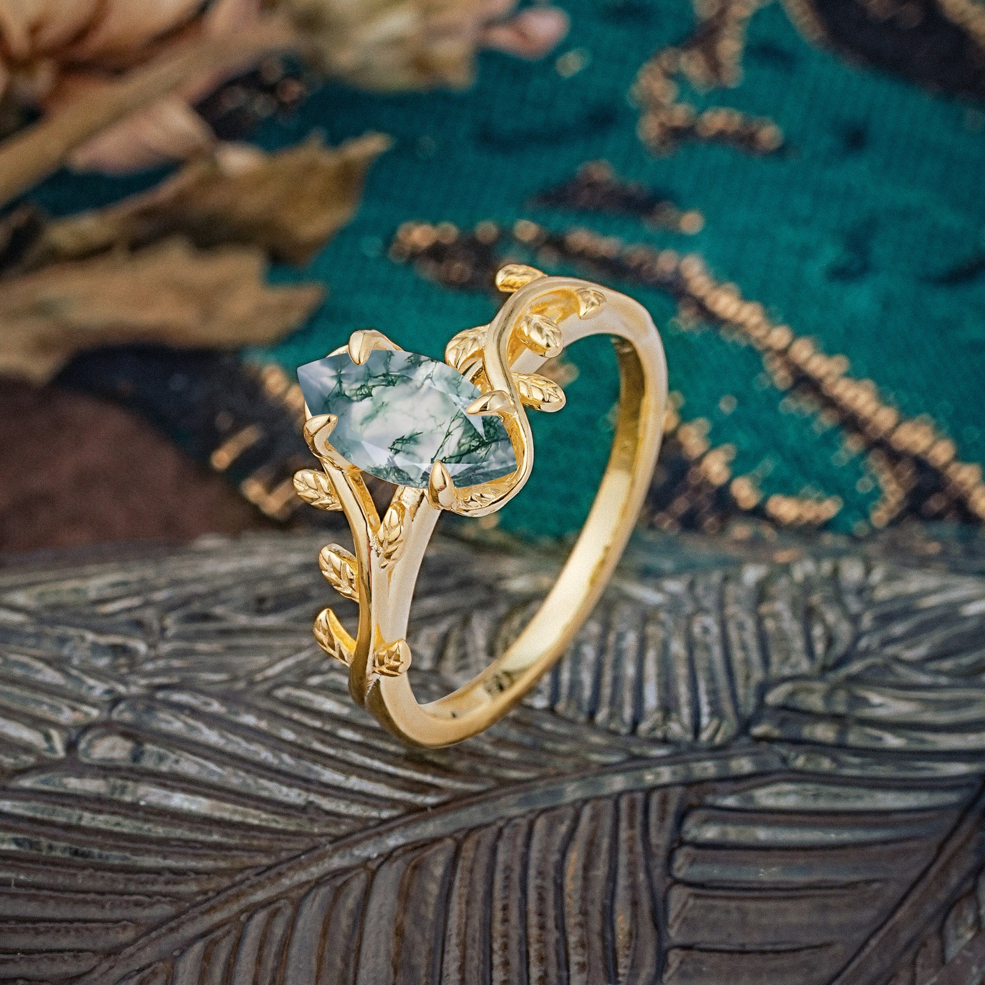 | Stone Material: Moss Agate | Stone Material: Moissanite |