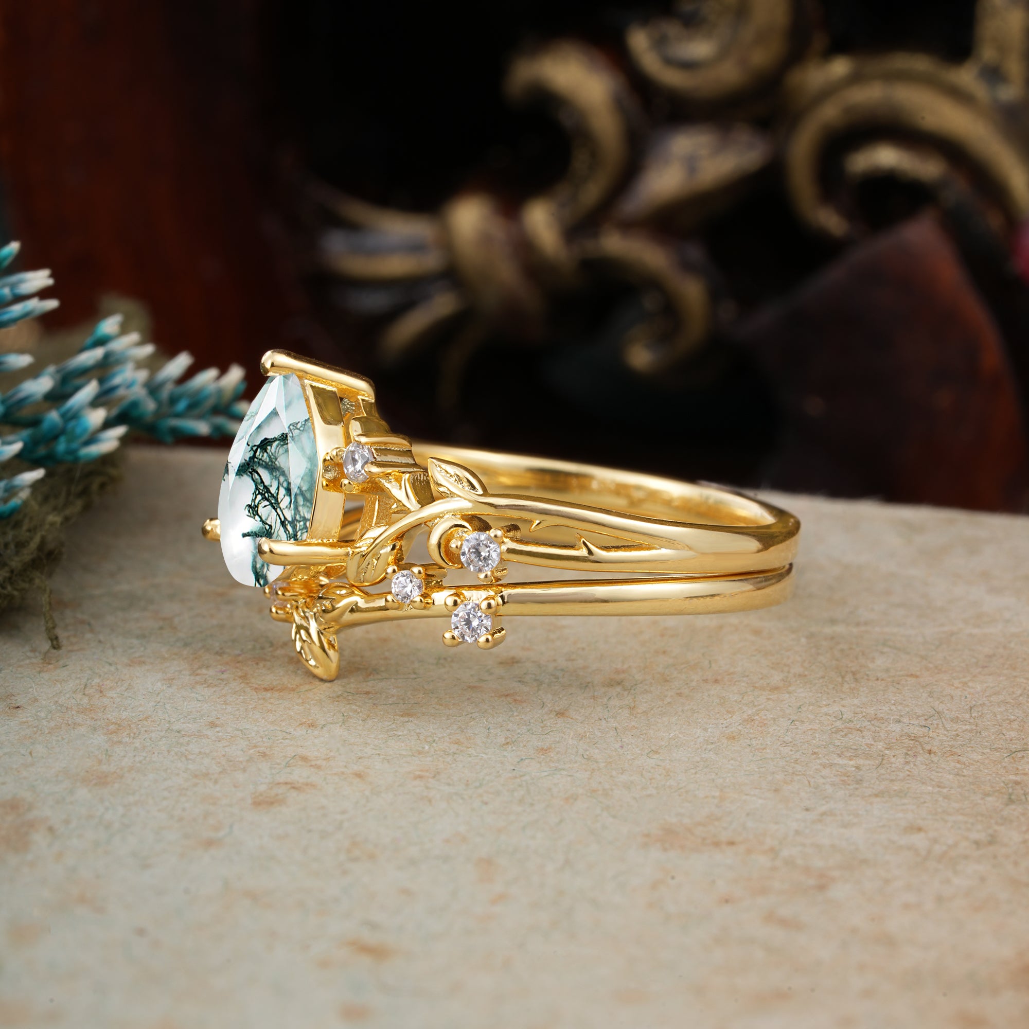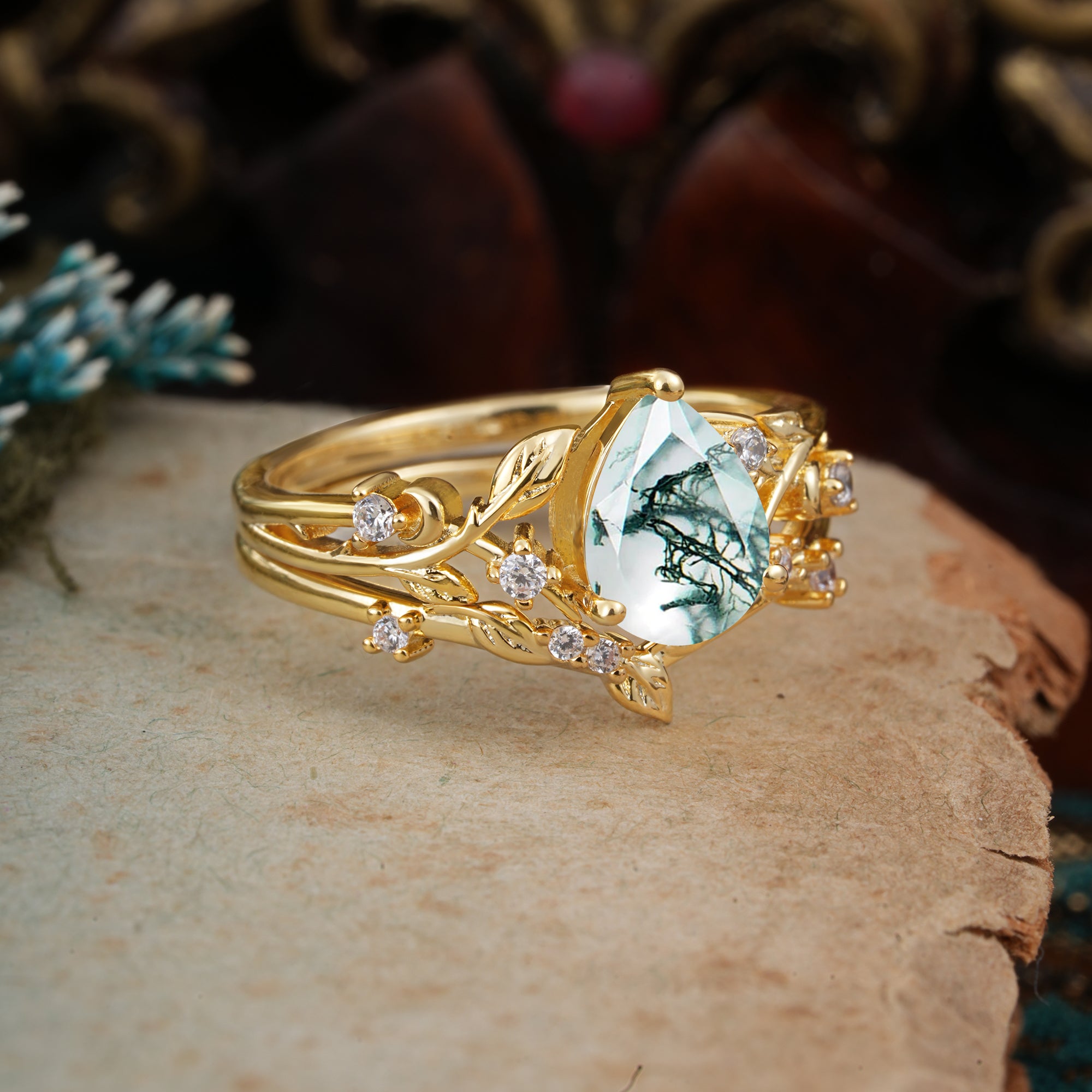 | Stone Material: Moss Agate | Stone Material: Moissanite |