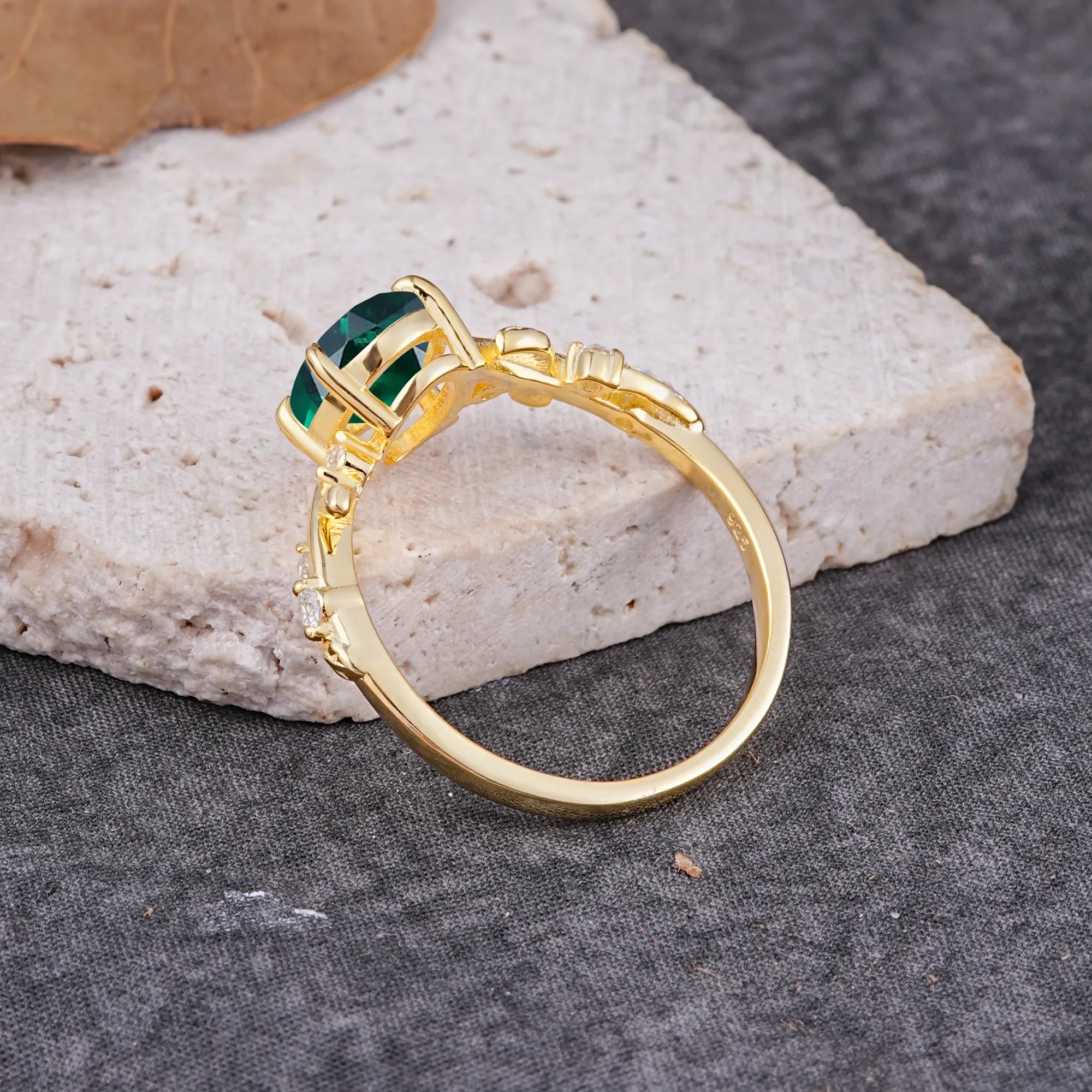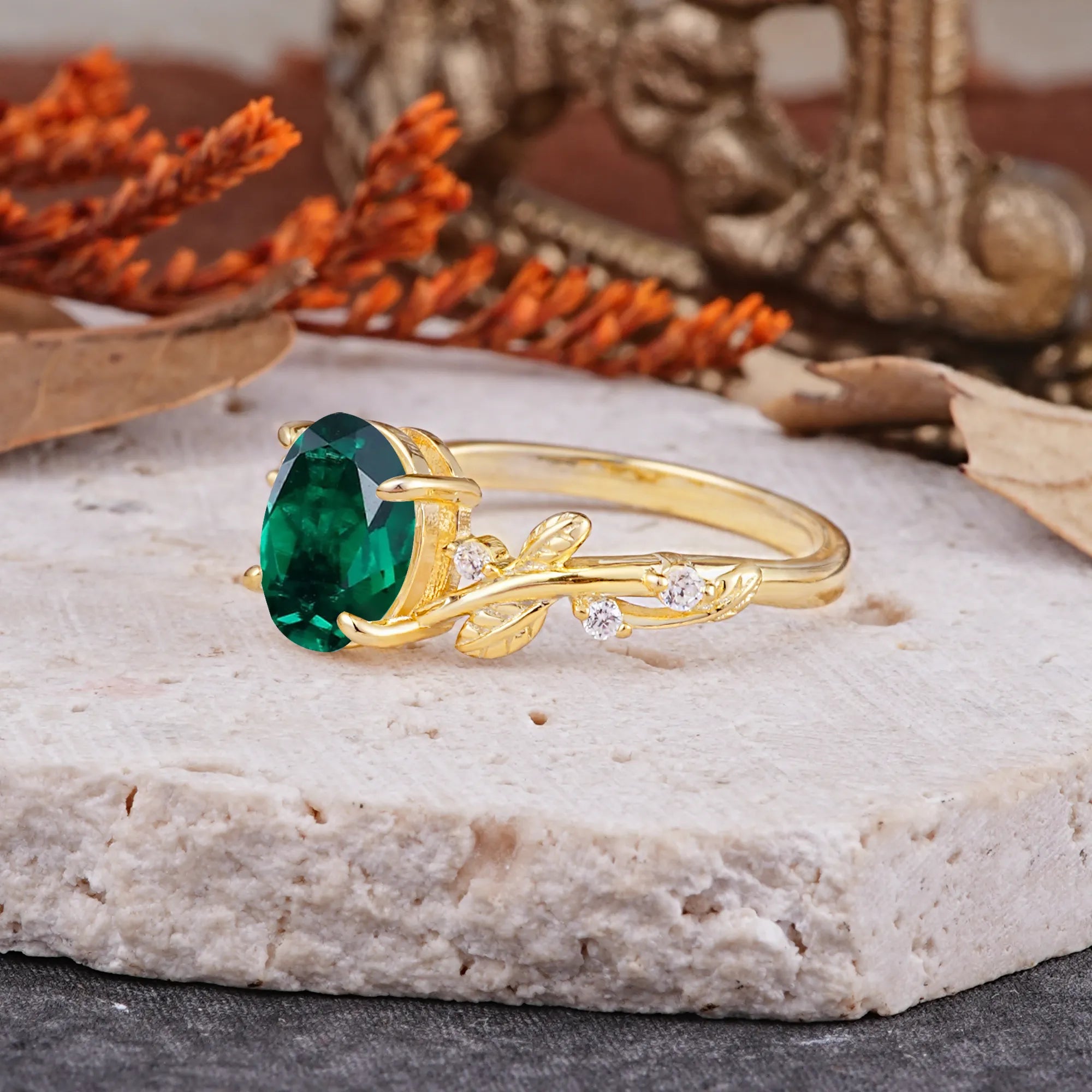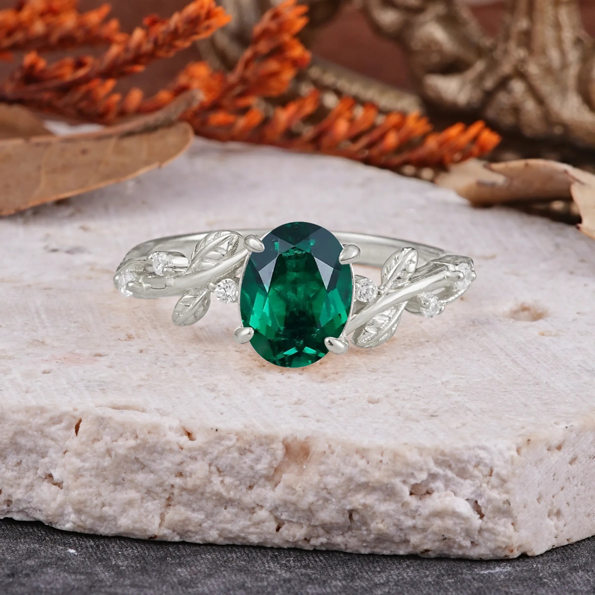 Nature-Inspired Oval Cut Leaf Emerald Promise Ring for Women