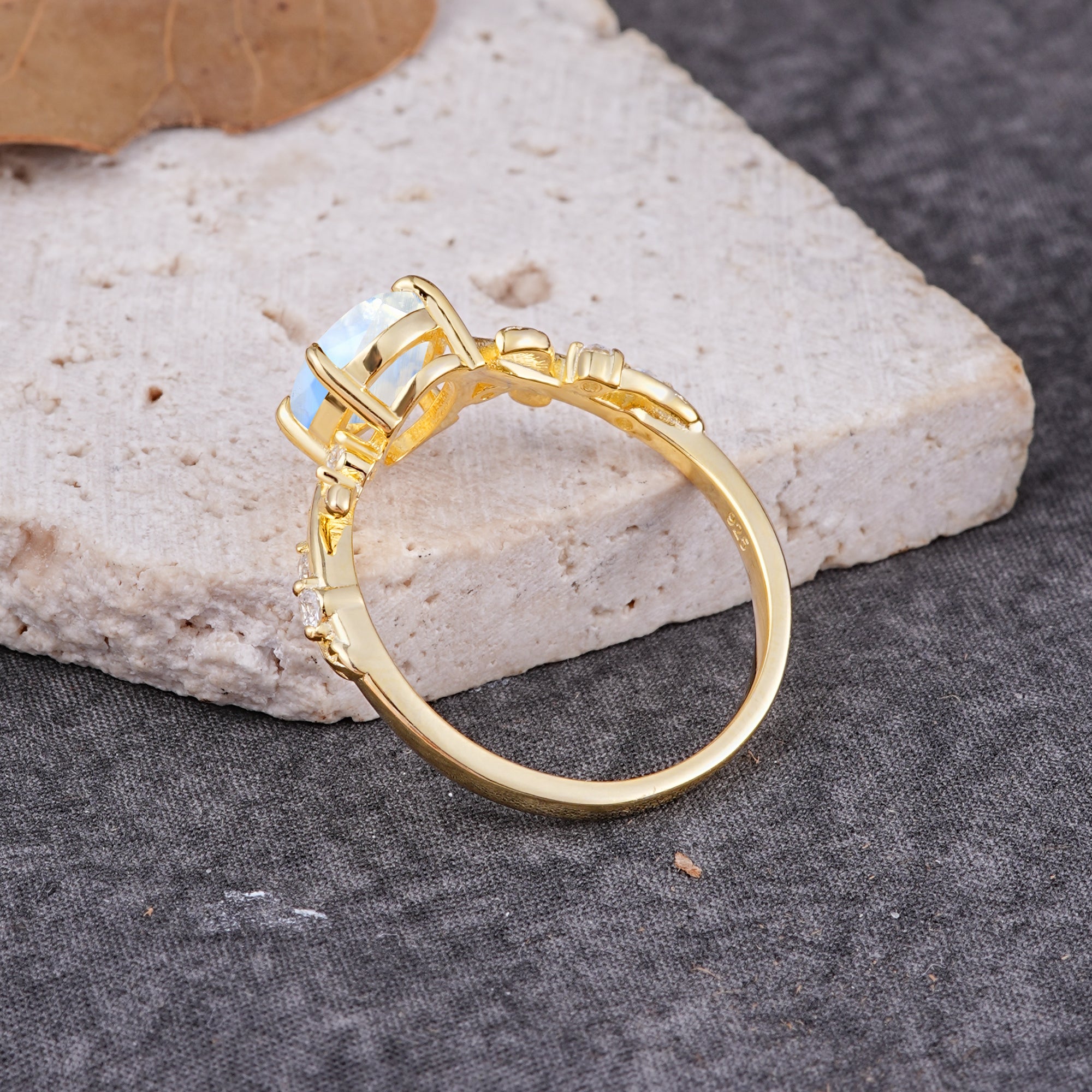 Nature-Inspired Oval Cut Leaf Moonstone Promise Ring for Women