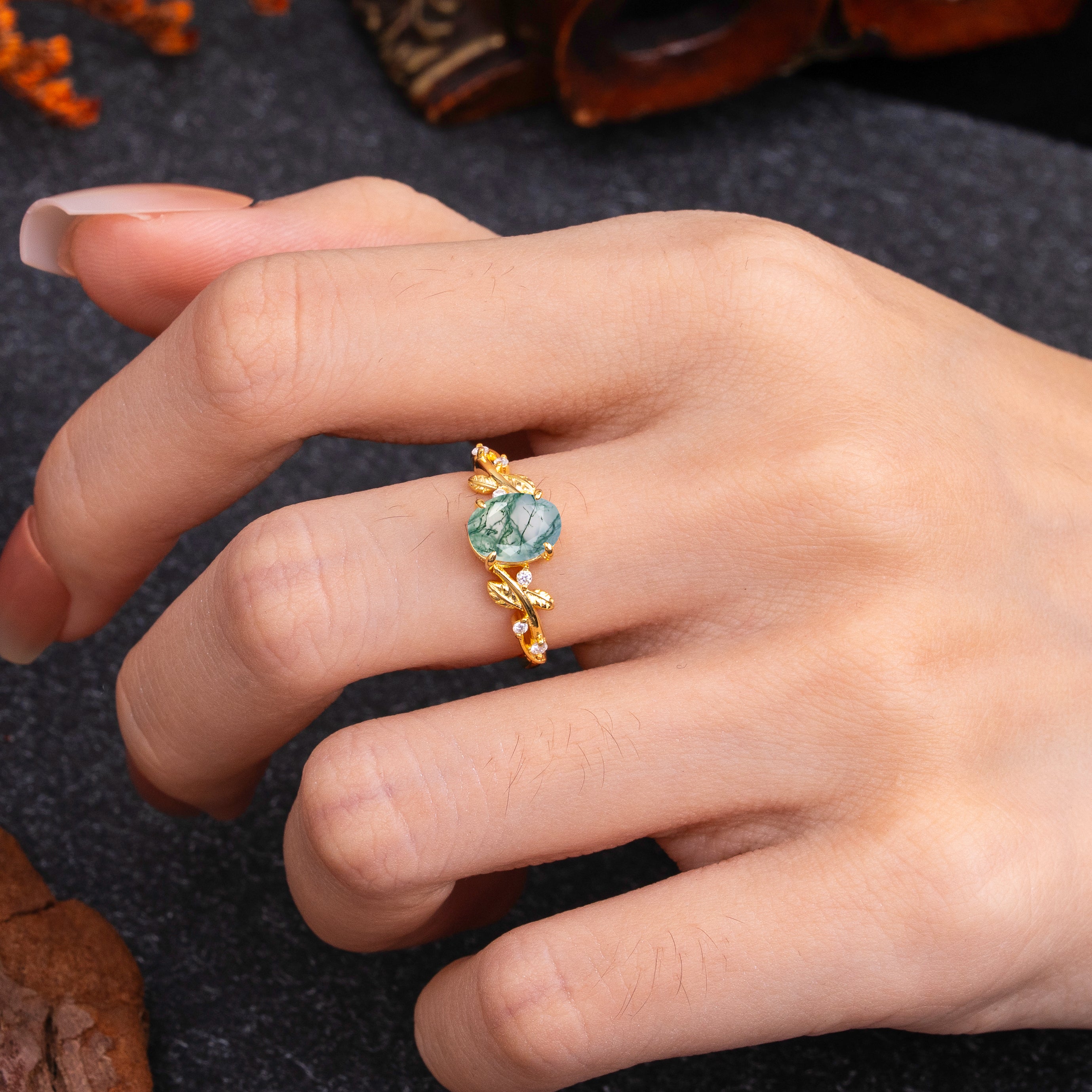| Stone Material: Moss Agate | Stone Material: Moissanite |