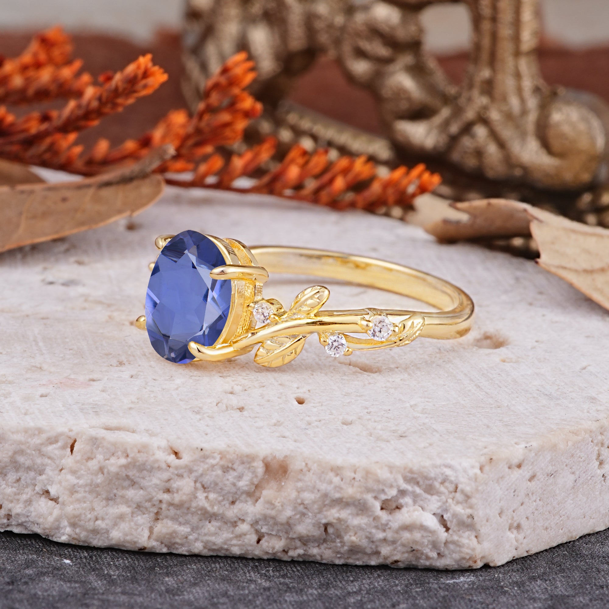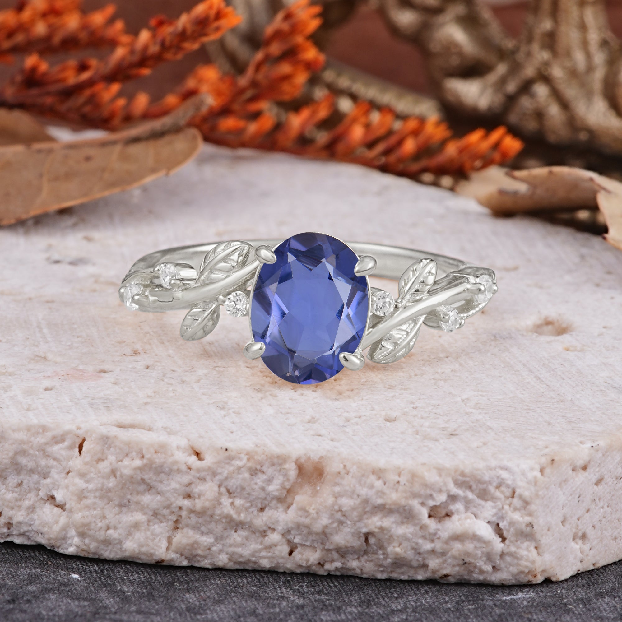Nature-Inspired Oval Cut Leaf Tanzanite Promise Ring for Women