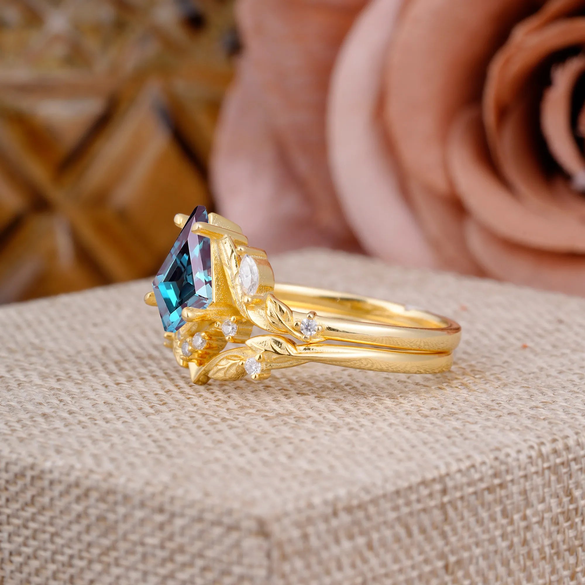 💖"Nature’s Elegance, Eternal Sparkle-Nature Inspired The Dreamy Kite- Cut Alexandrite with Fantasy Leaf Gold Ring."