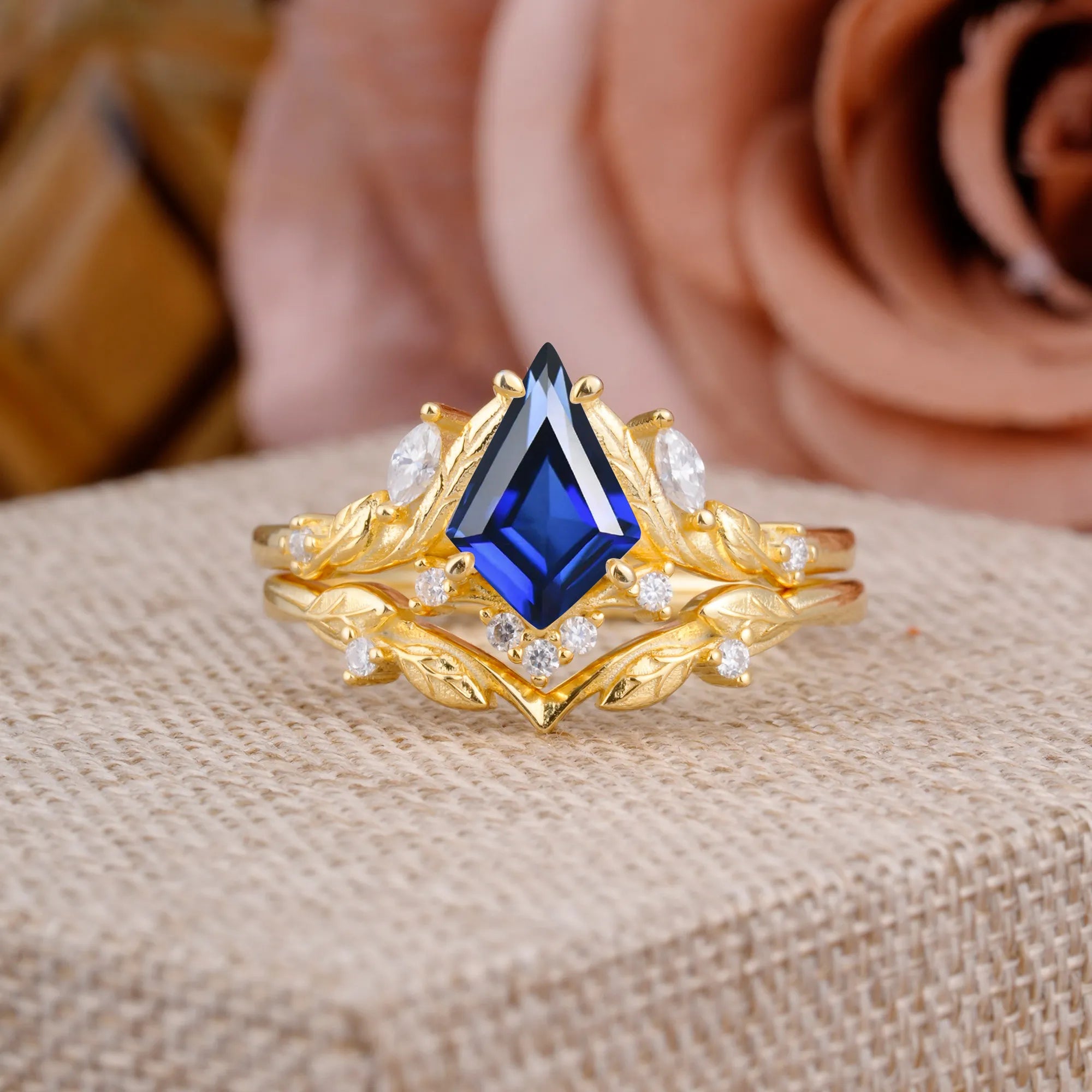 💖"Nature’s Elegance, Eternal Sparkle-Nature Inspired The Dreamy Kite- Cut Sapphire with Fantasy Leaf Gold Ring."