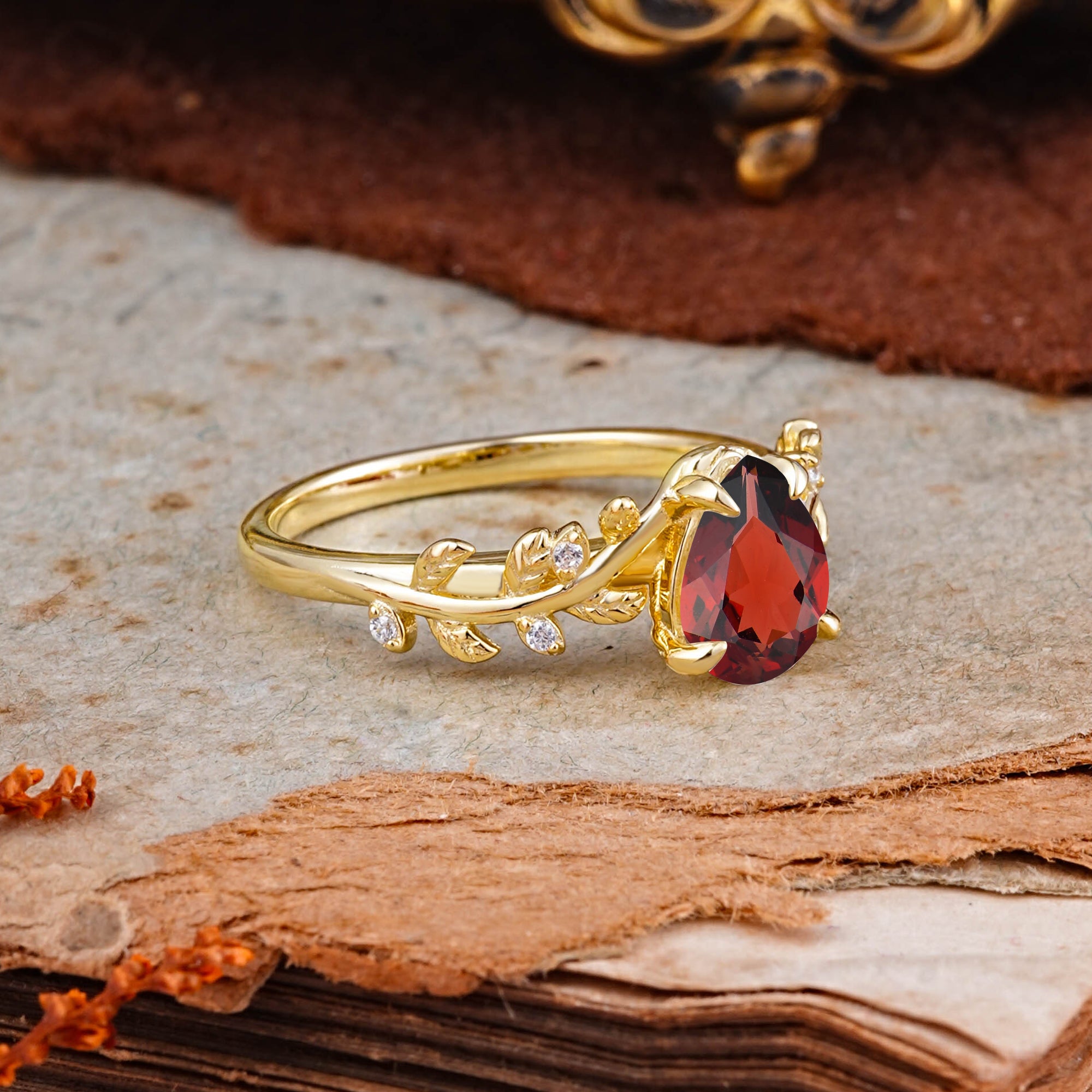Nature-Inspired Vine-Entwined 4-Prong Teardrop-Cut Garnet Engagement Ring