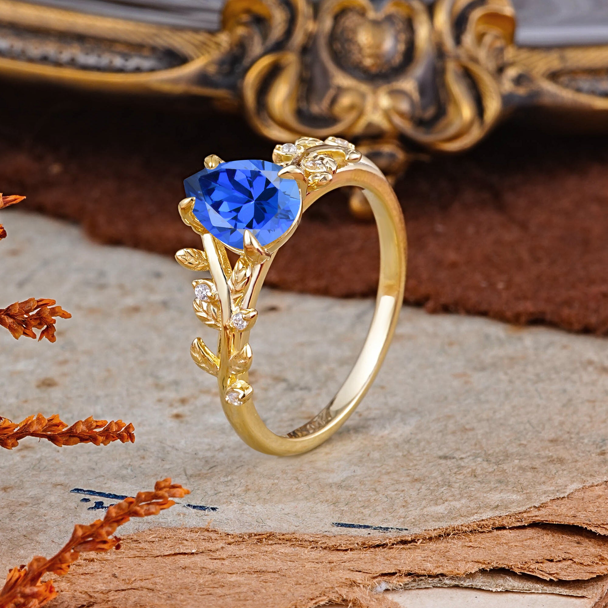 Nature-Inspired Vine-Entwined 4-Prong Teardrop-Cut Sapphire Engagement Ring