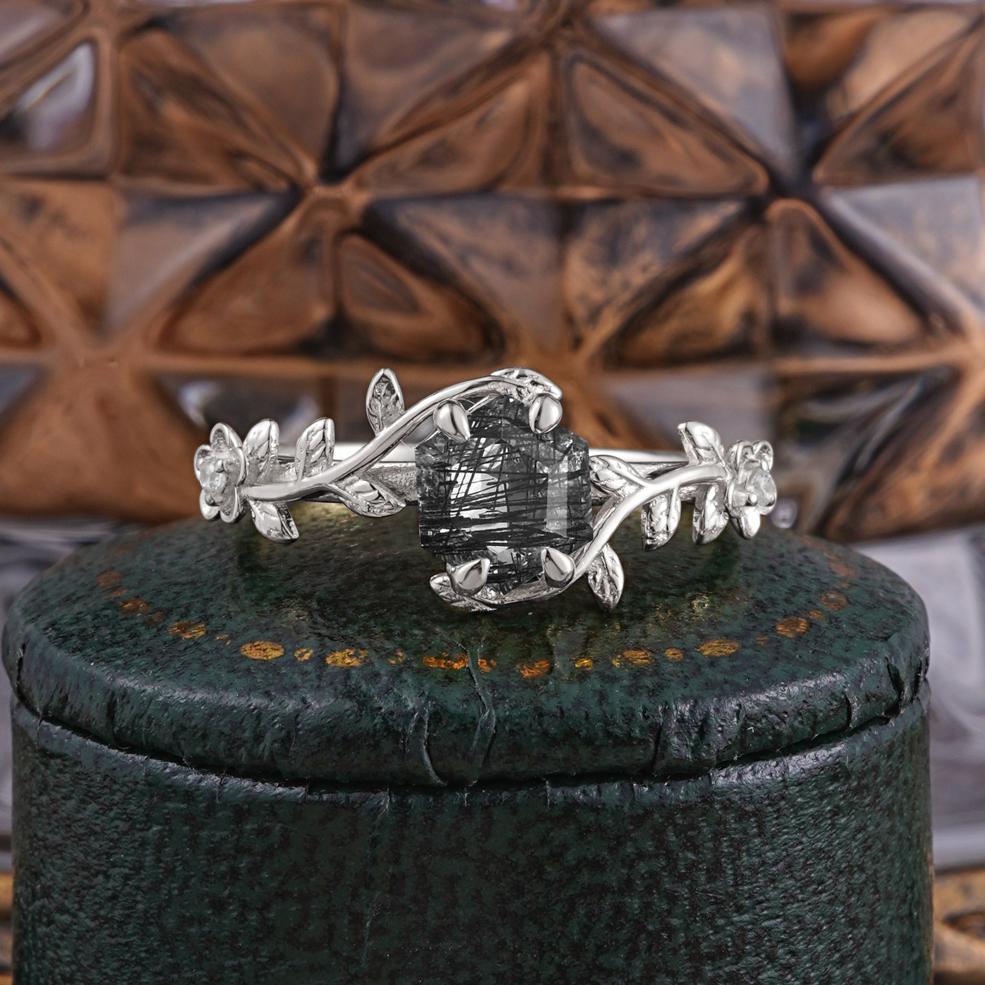 | Stone Material: Black Rutilated Quartz | Stone Material: Moissanite |
