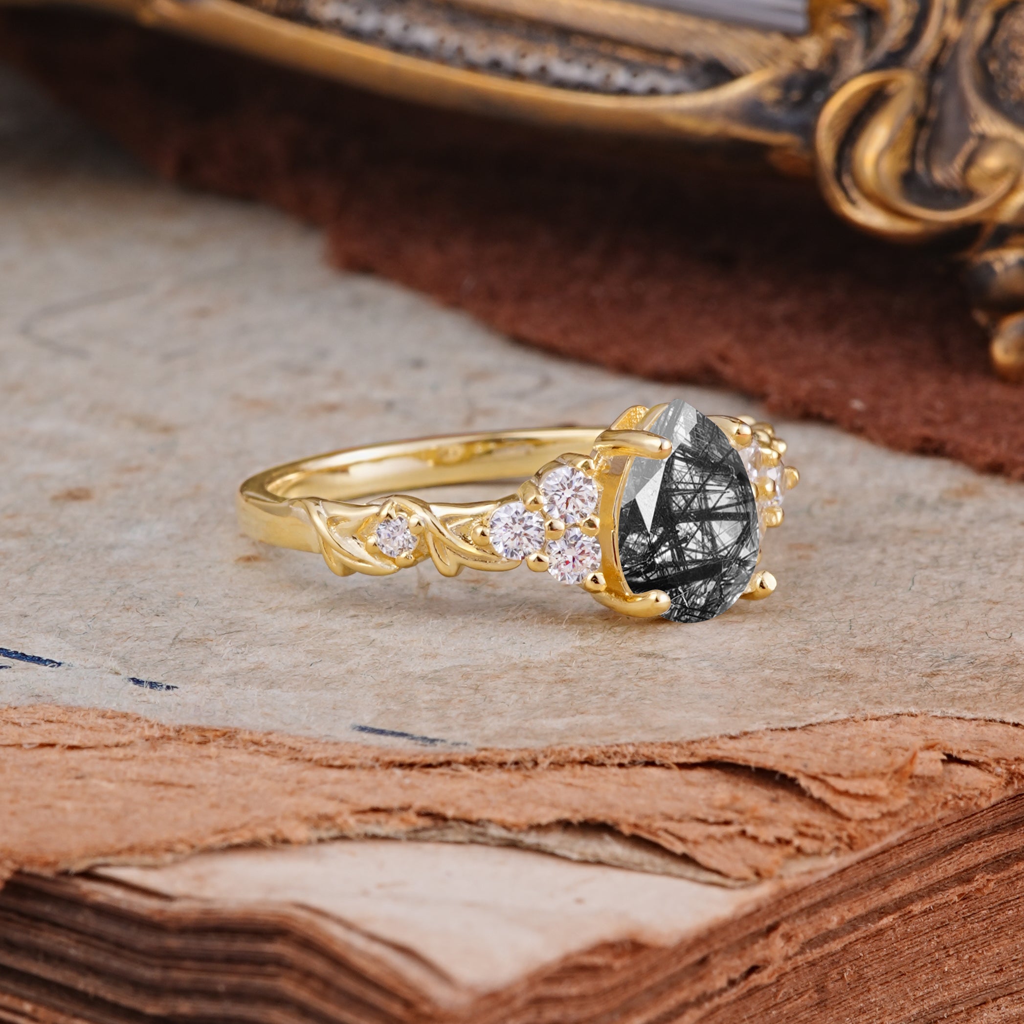 | Stone Material: Black Rutilated Quartz | Stone Material: Moissanite |
