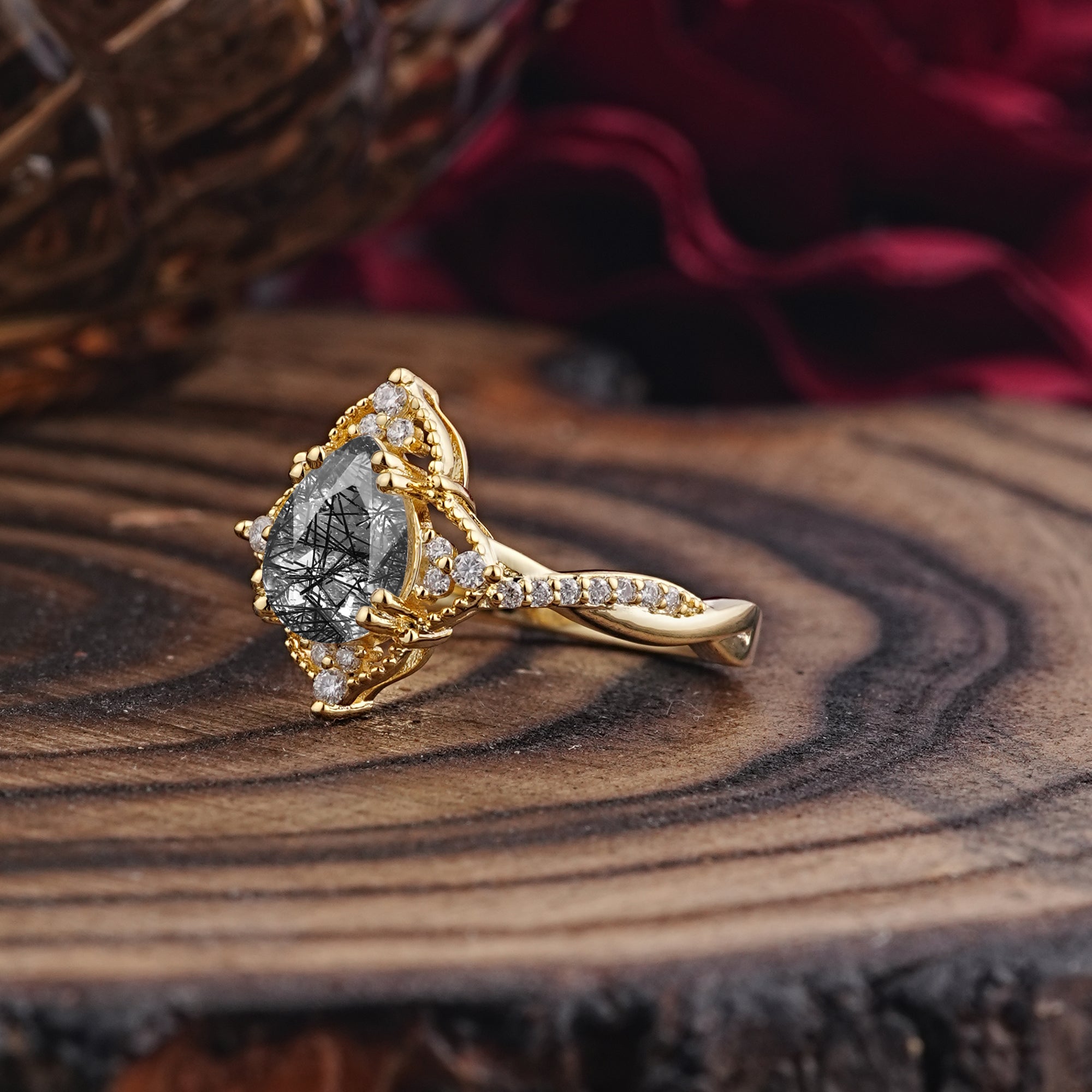 | Stone Material: Black Rutilated Quartz | Stone Material: Moissanite |