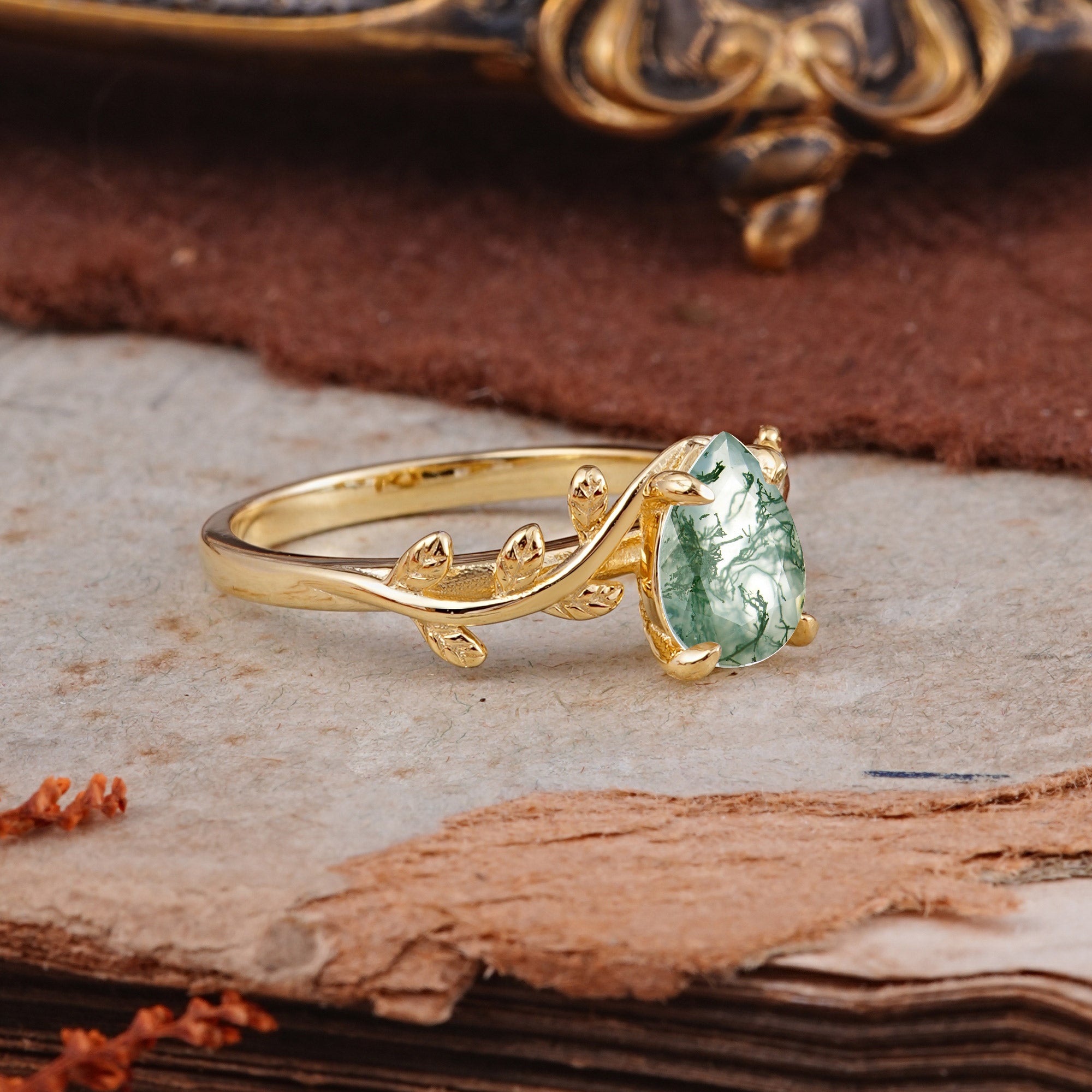 | Stone Material: Moss Agate | Stone Material: Moissanite |