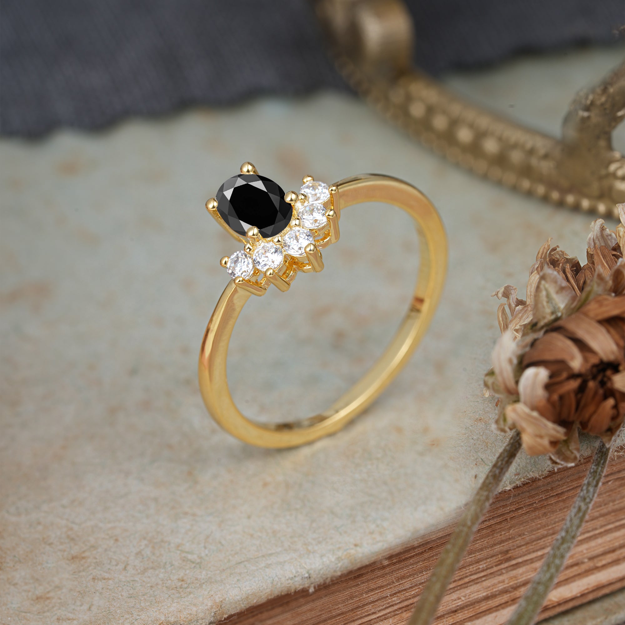Oval Cut Unique Bottom Cluster Black Onyx Anniversary Ring for Women