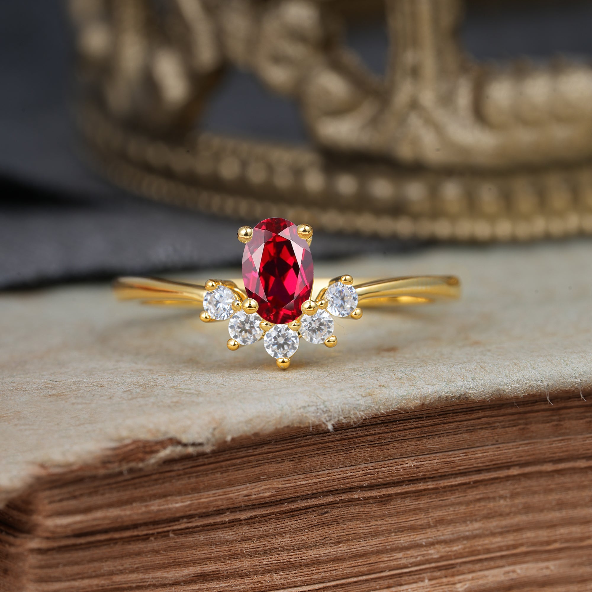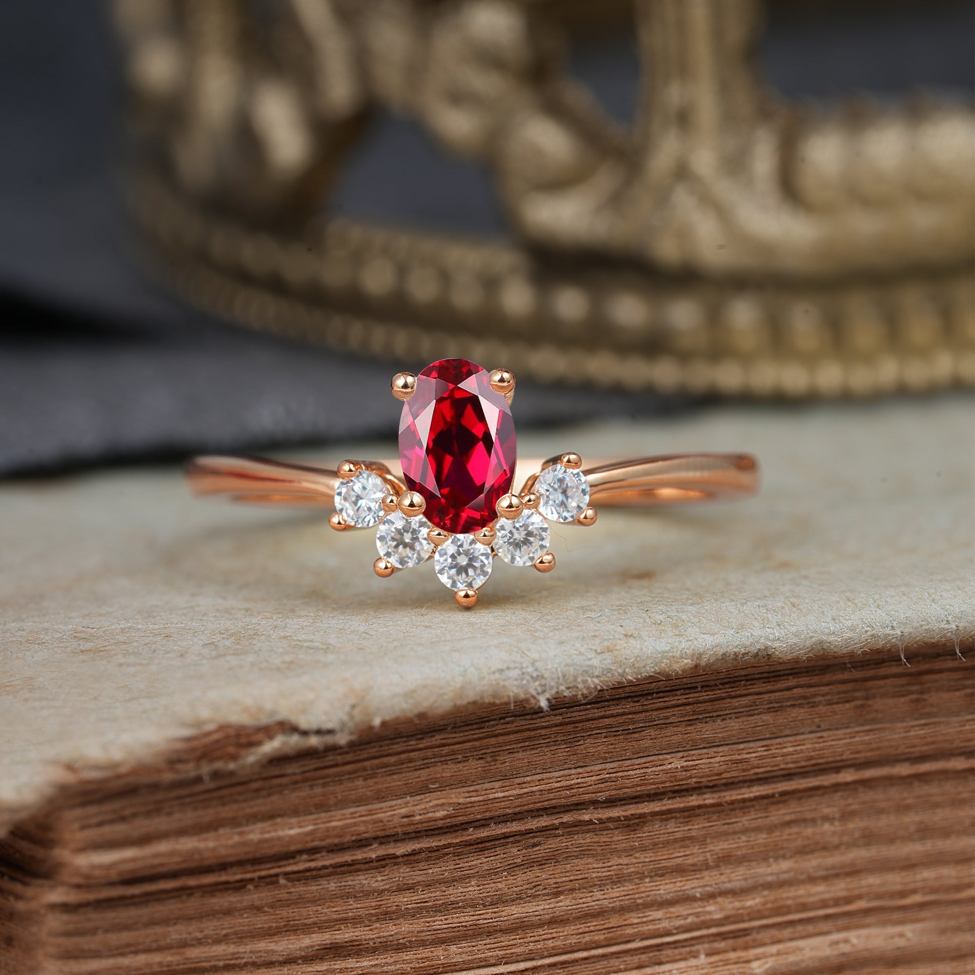Oval Cut Unique Bottom Cluster Ruby Anniversary Ring for Women
