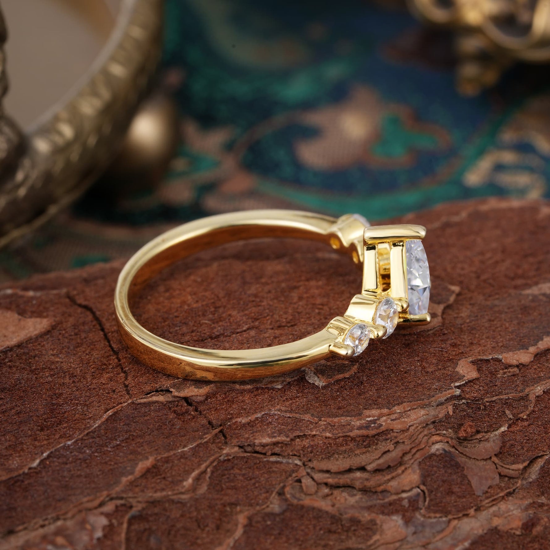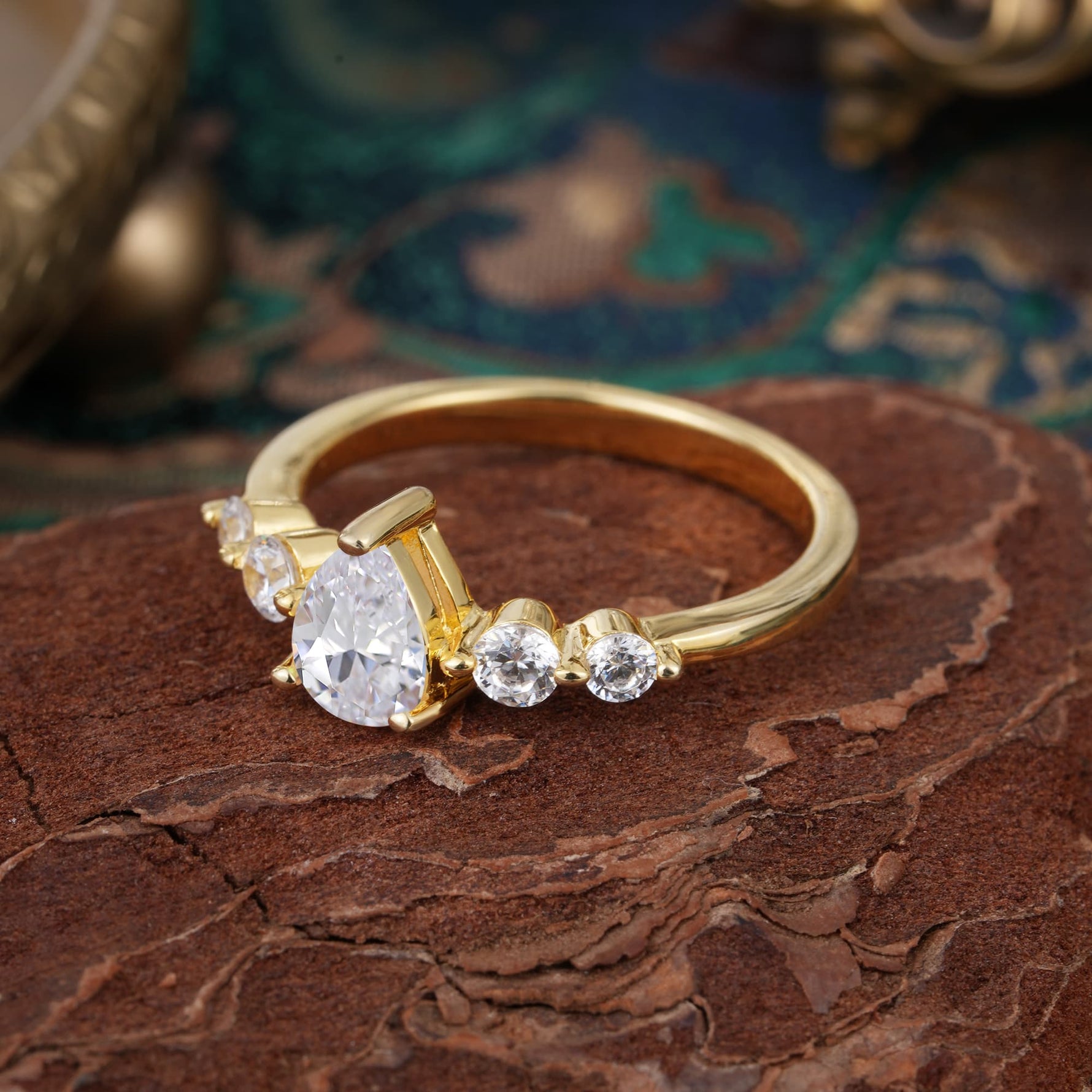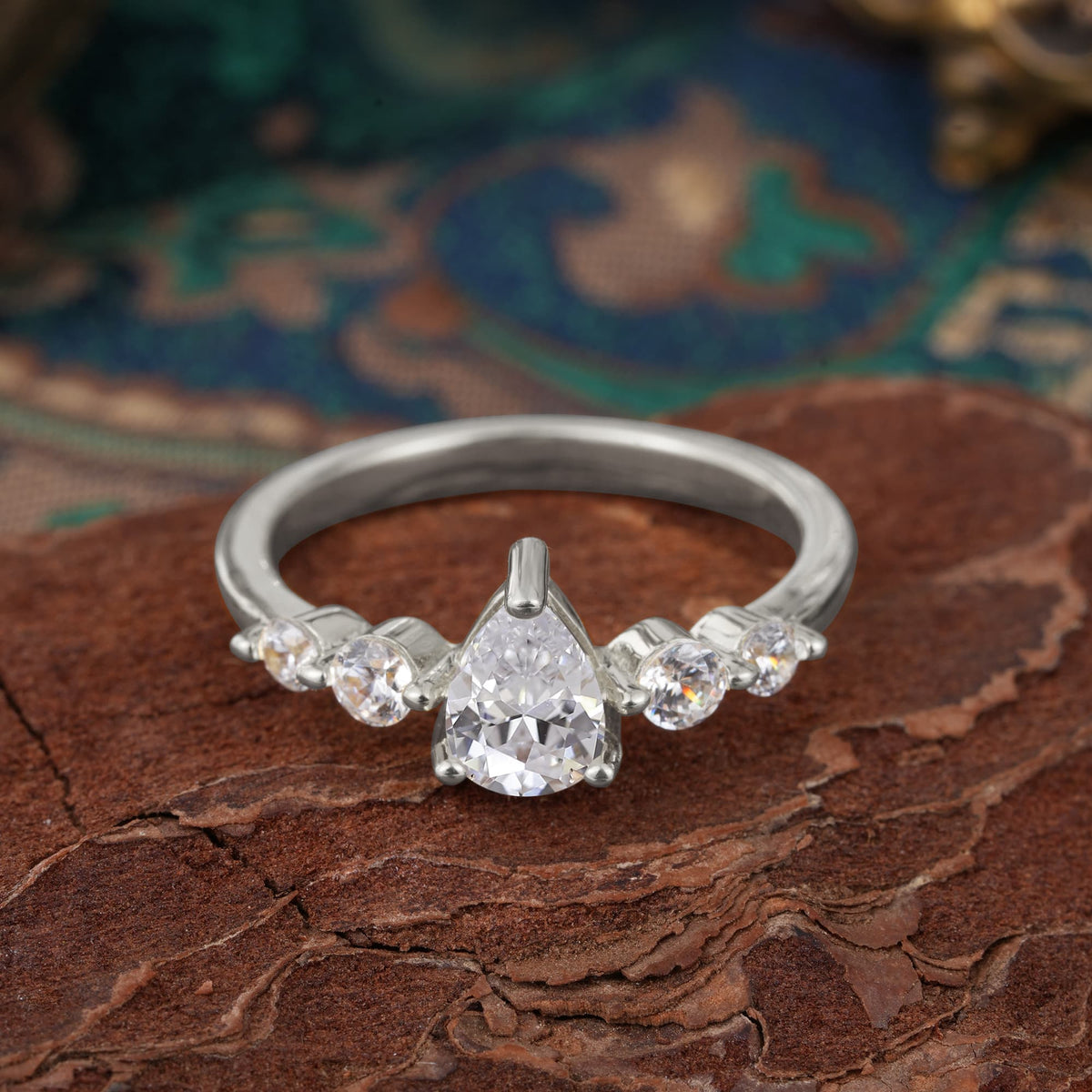 Pear Cut 3 Prong Classic Moissanite Side Stone Engagement Ring