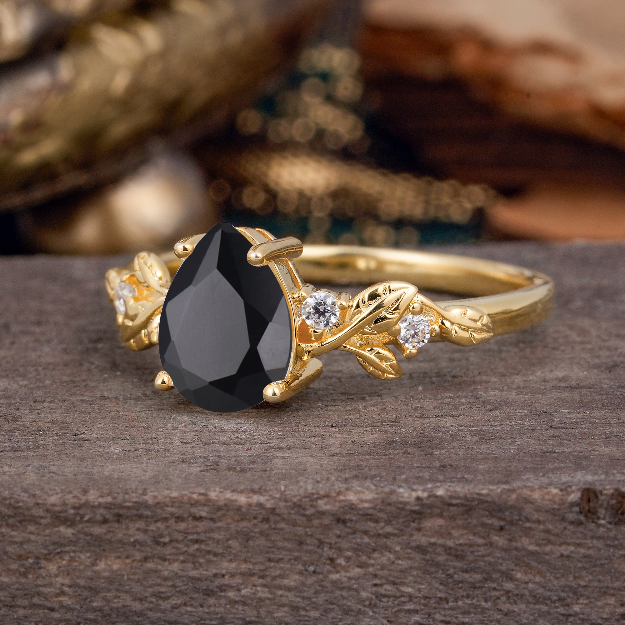 Pear Shaped Nature-Inspired Women's Black Onyx Engagement Ring