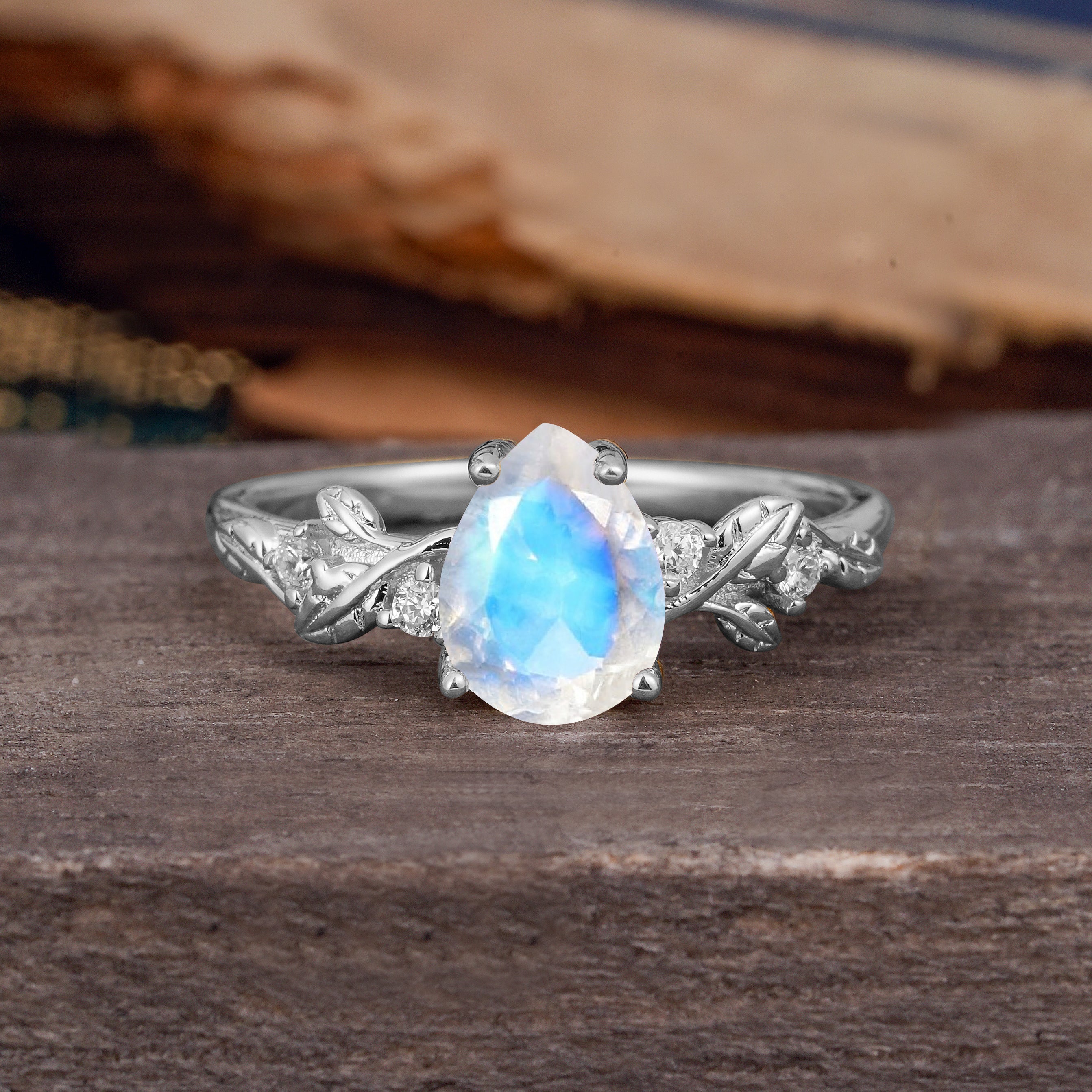Pear Shaped Nature-Inspired Women's Moonstone Engagement Ring