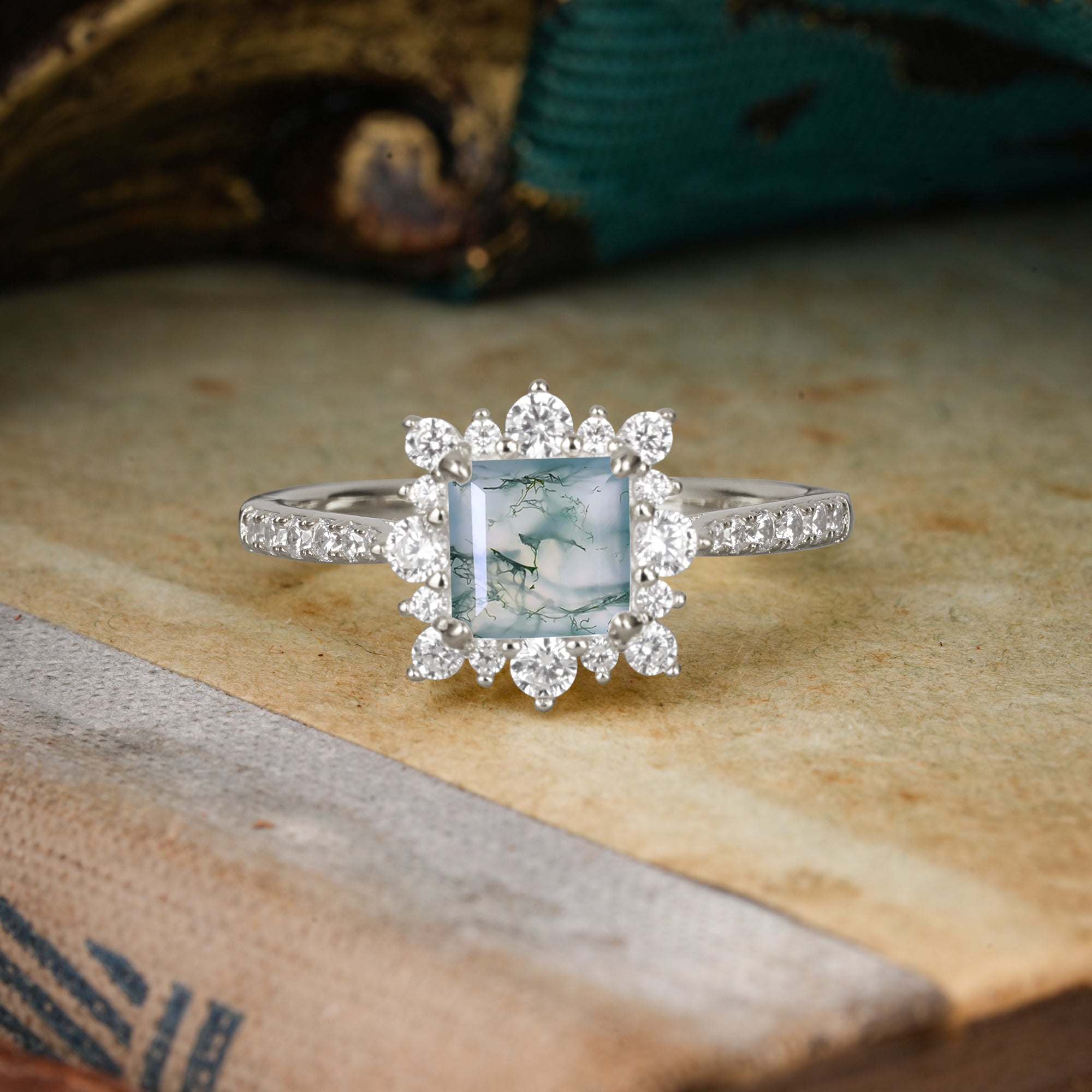 | Stone Material: Moss Agate | Stone Material: Moissanite |