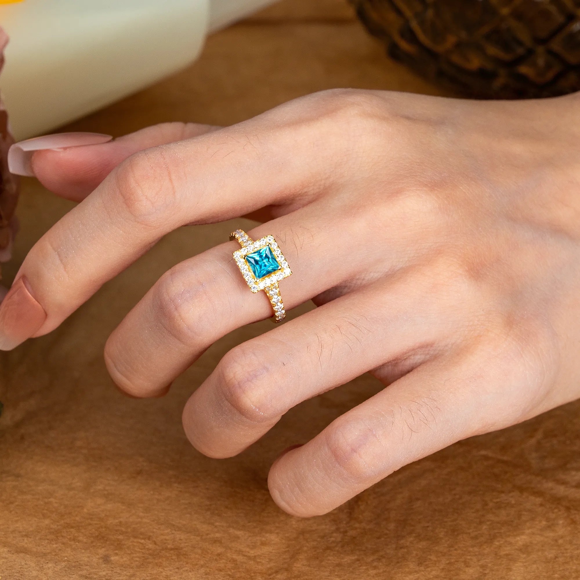 Princess Cut Aquamarine Engagement Ring Half Eternity Halo Promise Ring