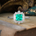 Timeless and elegant, this Classic Princess Cut Emerald Cluster Ring showcases a vibrant green emerald at the center, framed by shimmering accent stones for added brilliance. Set in your choice of Sterling Silver, Gold, or Platinum, it's a bold yet refined symbol of enduring love and classic style.