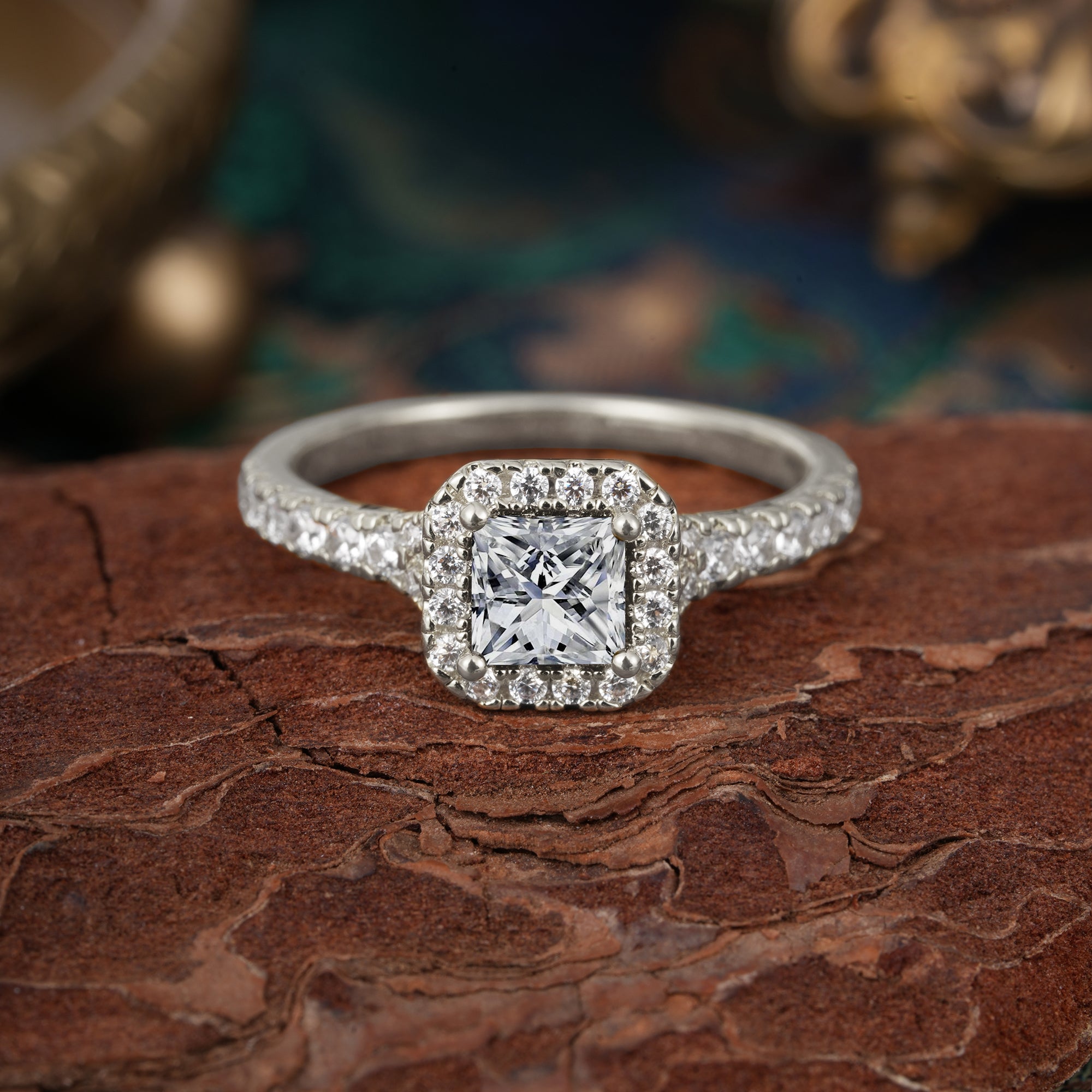 Princess Cut Lab Diamond Engagement Ring Halo Half Eternity Pave Band