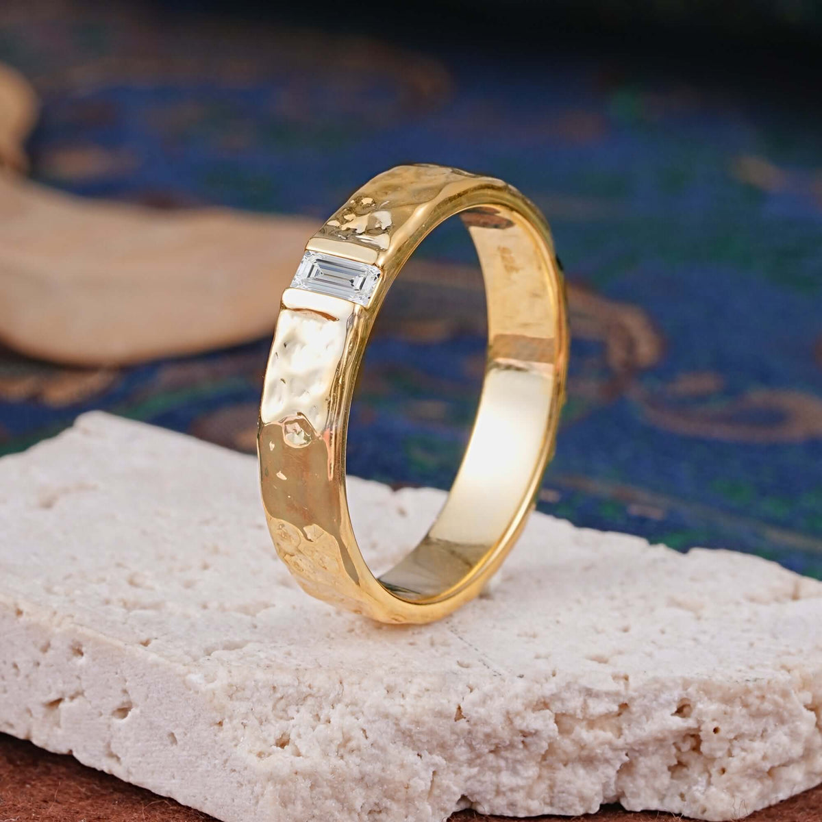 Retro-Inspired Luxury Emerald Cut Lab Diamond Mens Wedding Rings