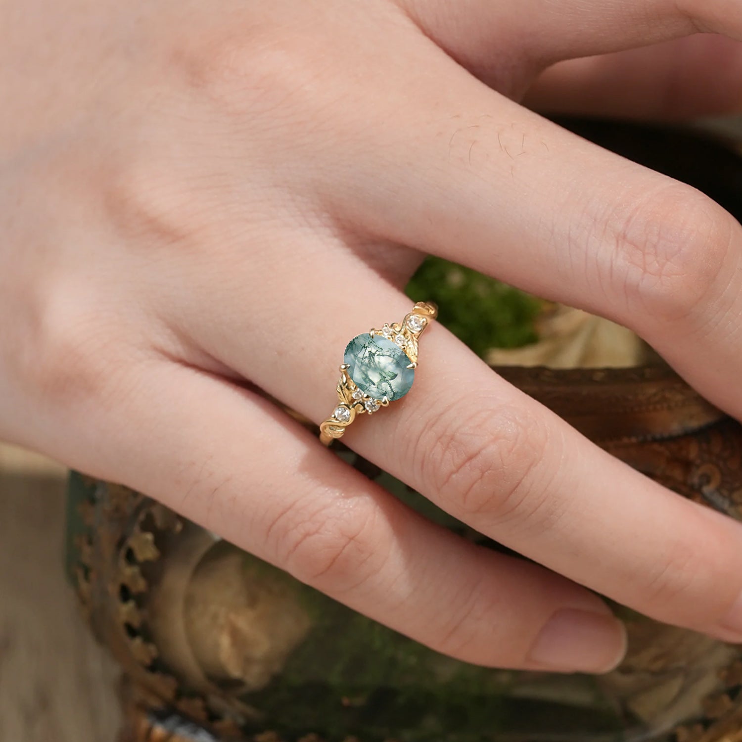 Stone Material: Moss Agate | Stone Material: Moissanite | |