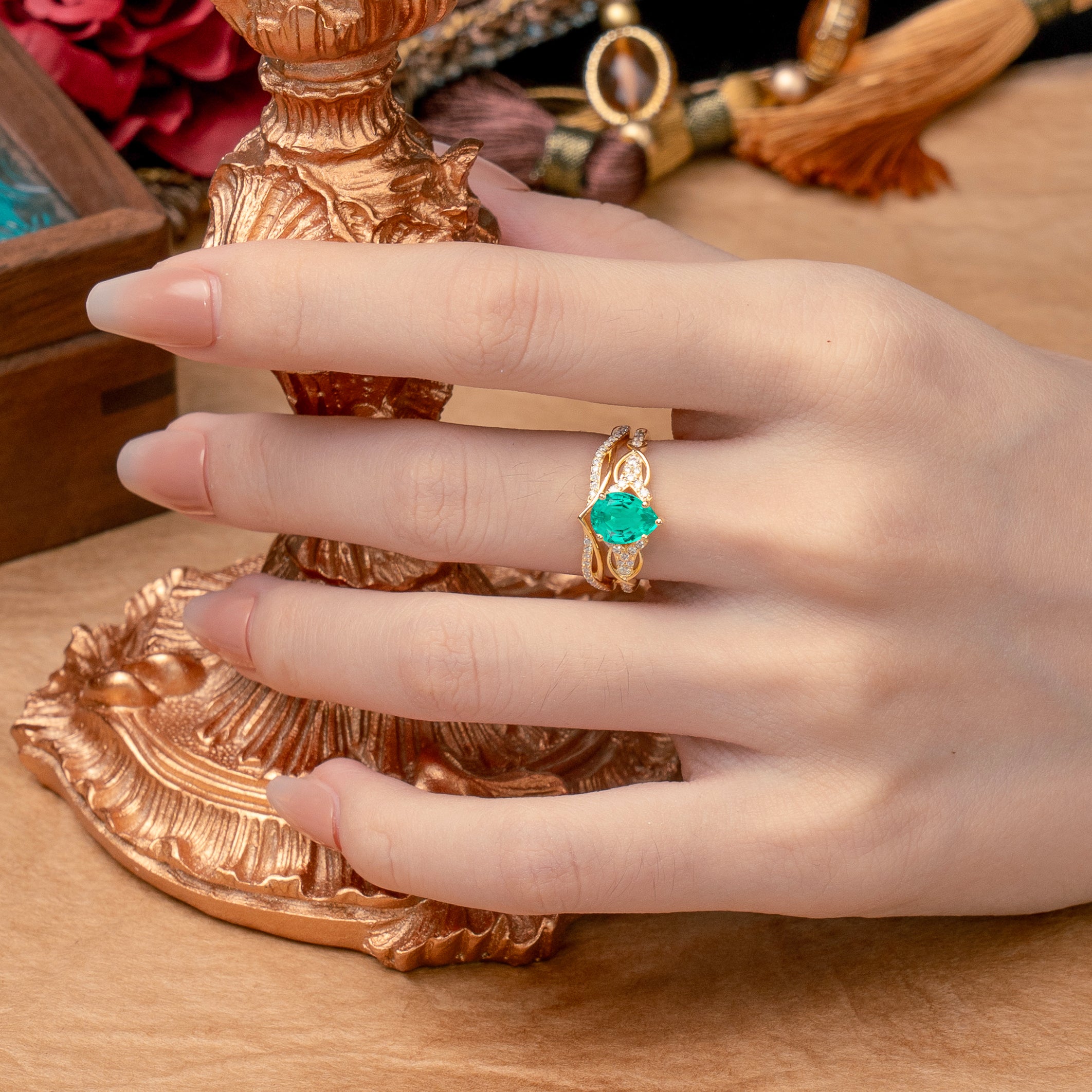 | Stone Material: Emerald | Stone Material: Moissanite |