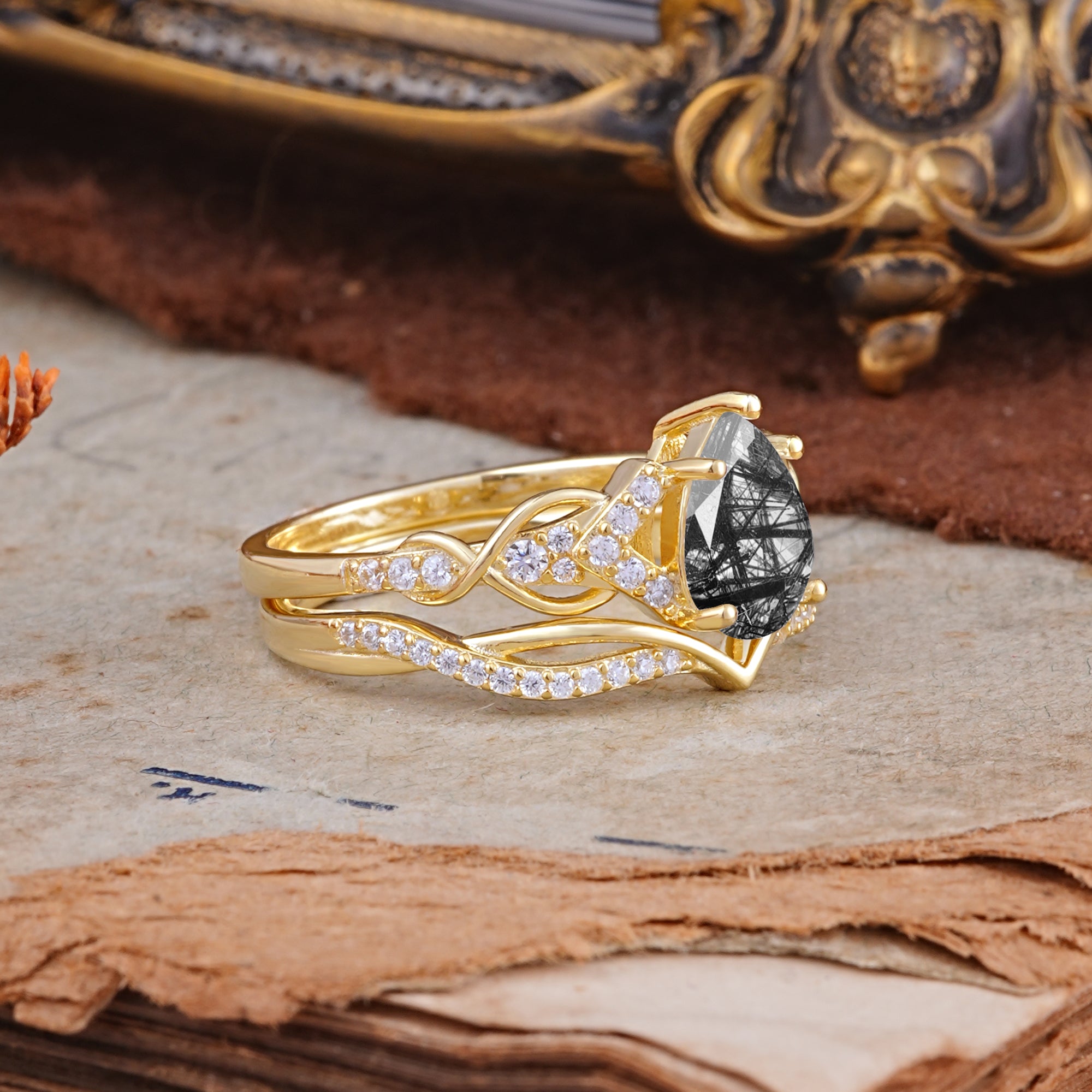 | Stone Material: Black Rutilated Quartz | Stone Material: Moissanite |