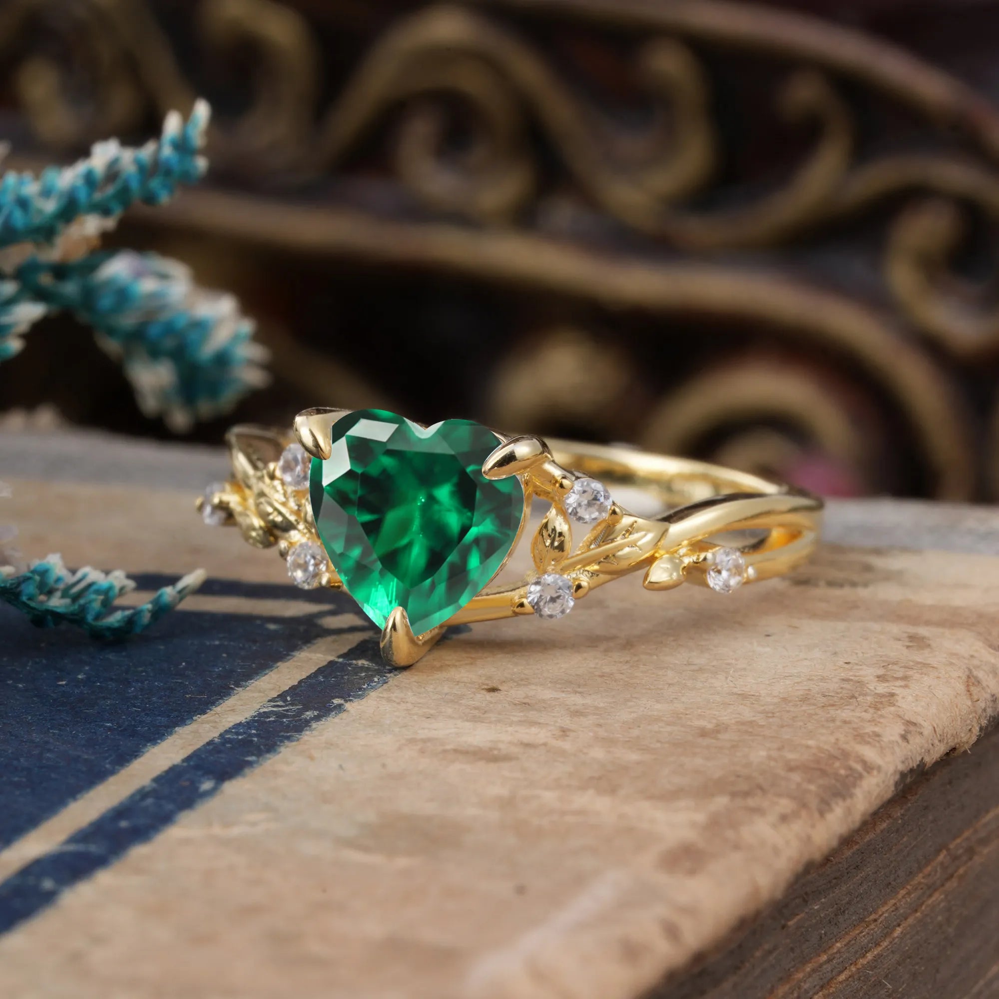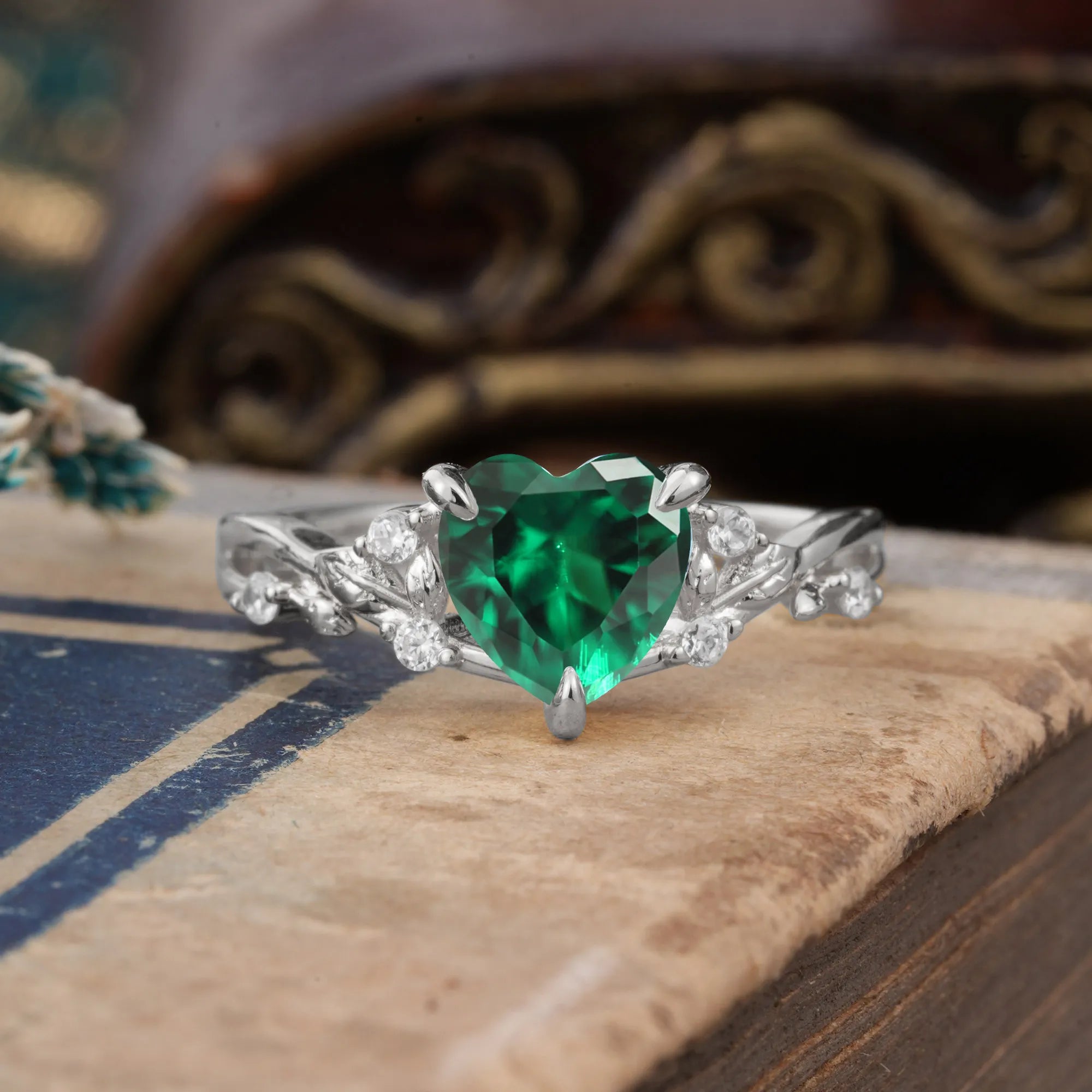 💖Romantic Heart-Shaped Nature-Inspired Emerald Engagement Ring – Love That Lasts Forever!