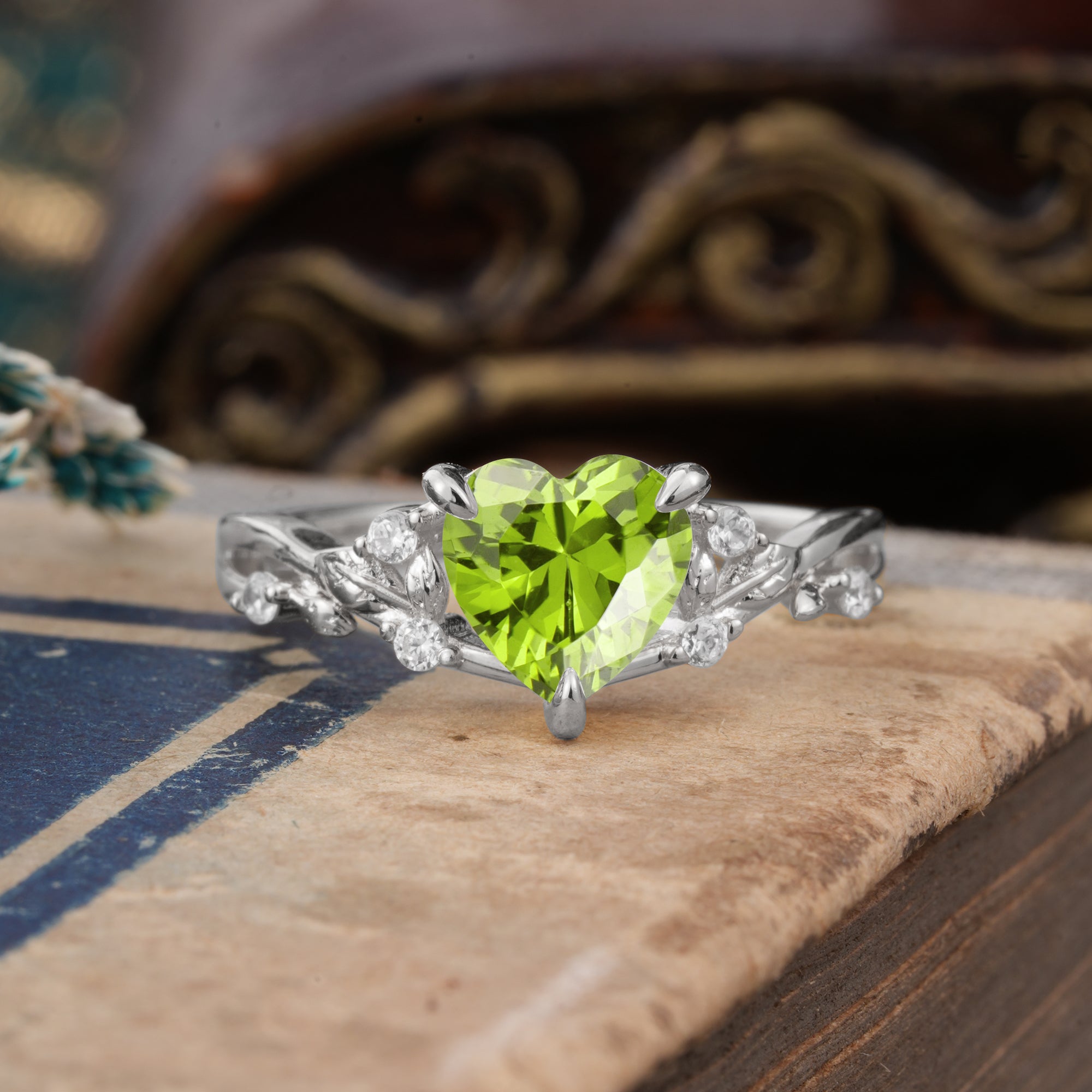 💖Romantic Heart-Shaped Nature-Inspired Peridot Engagement Ring – Love That Lasts Forever!