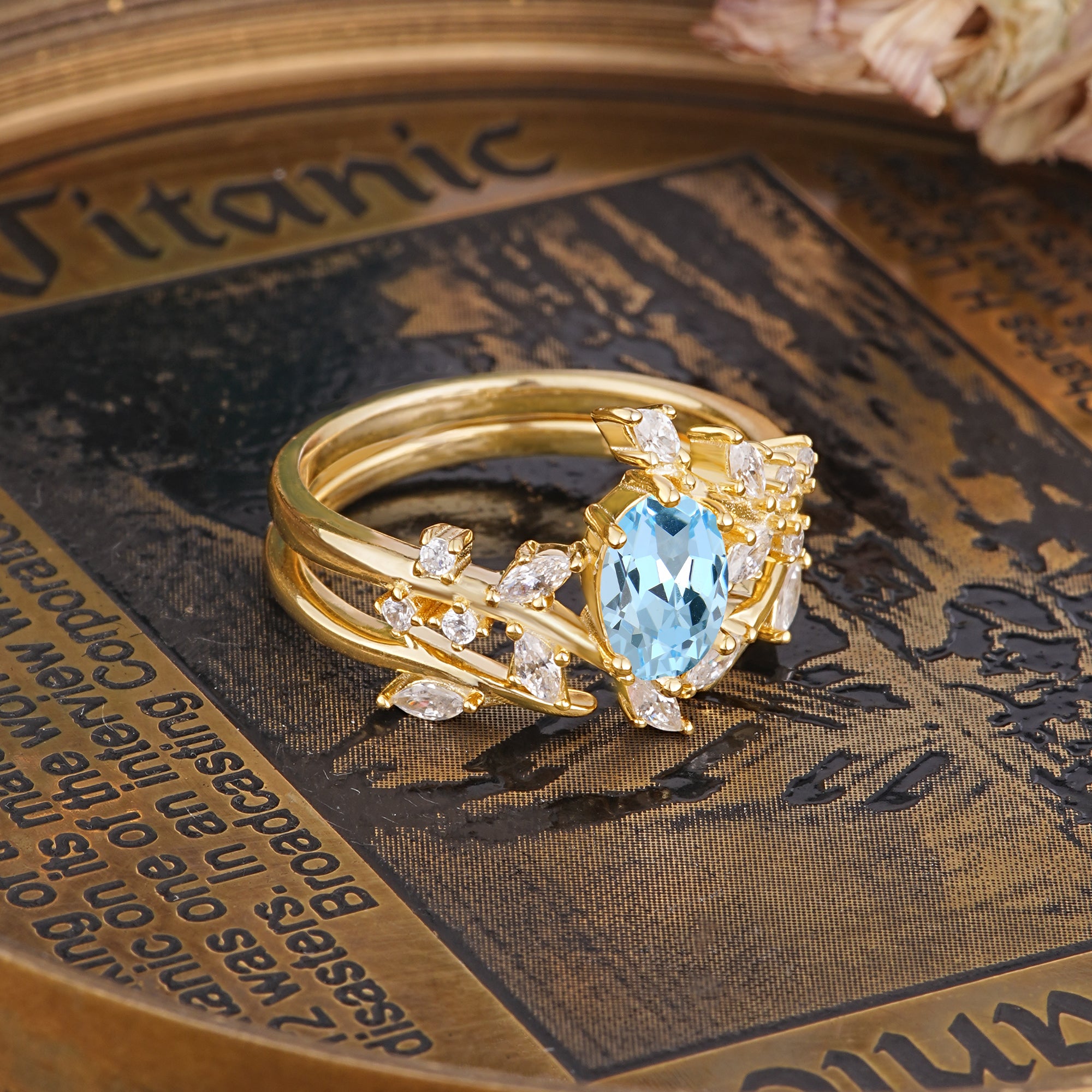 Romantic Nature-inspired 4-Prong Oval Cut Aquamarine Stacking Ring