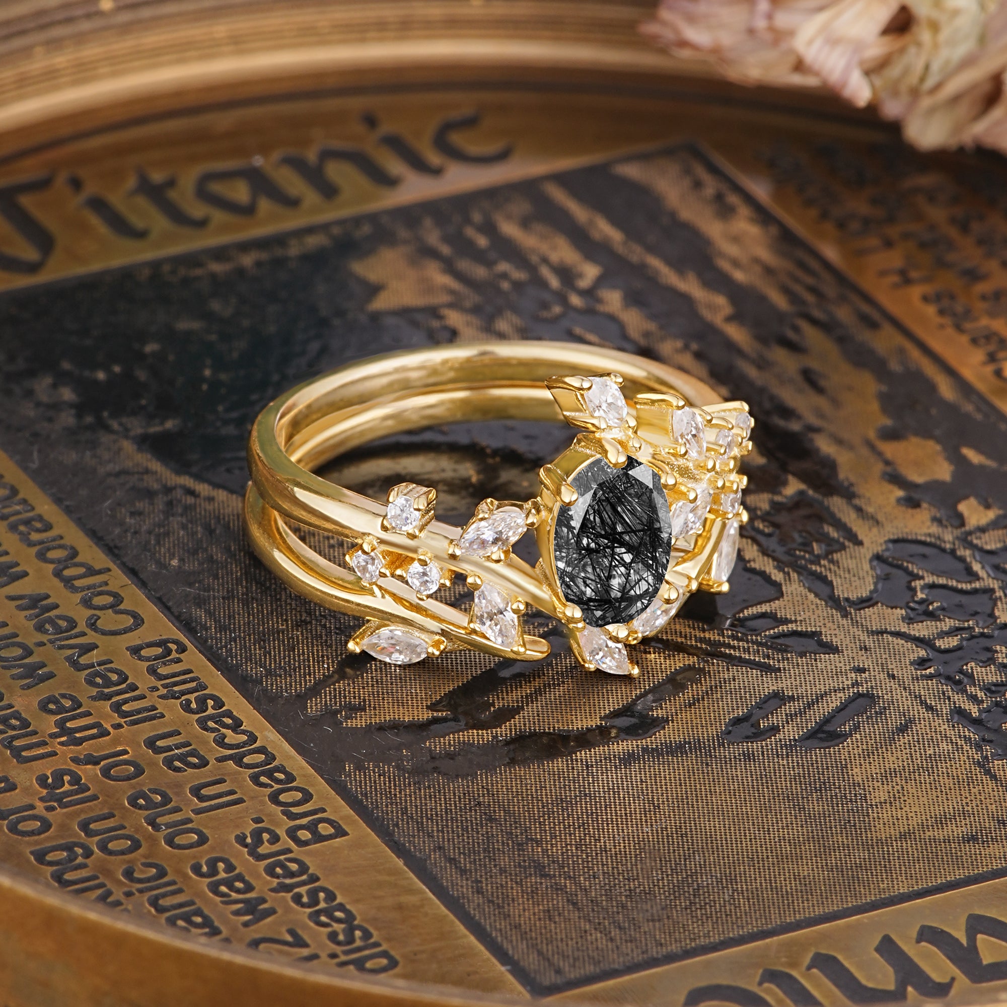| Stone Material: Black Rutilated Quartz | Stone Material: Moissanite |