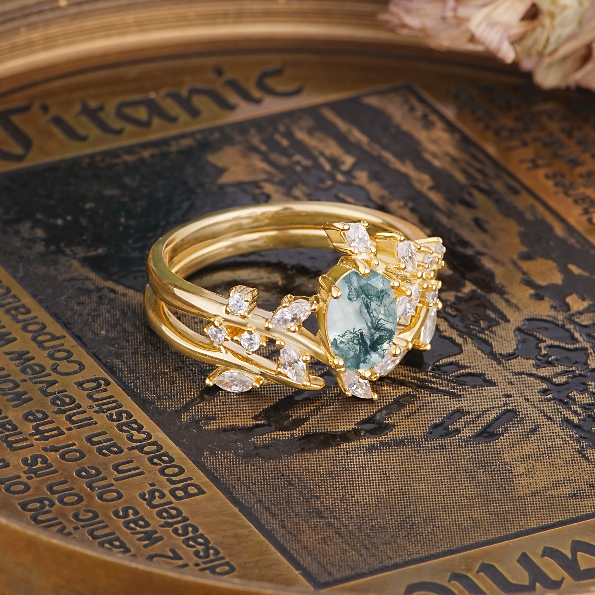 | Stone Material: Moss Agate | Stone Material: Moissanite |