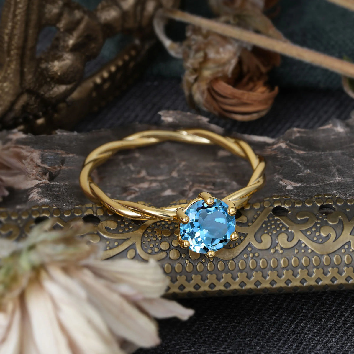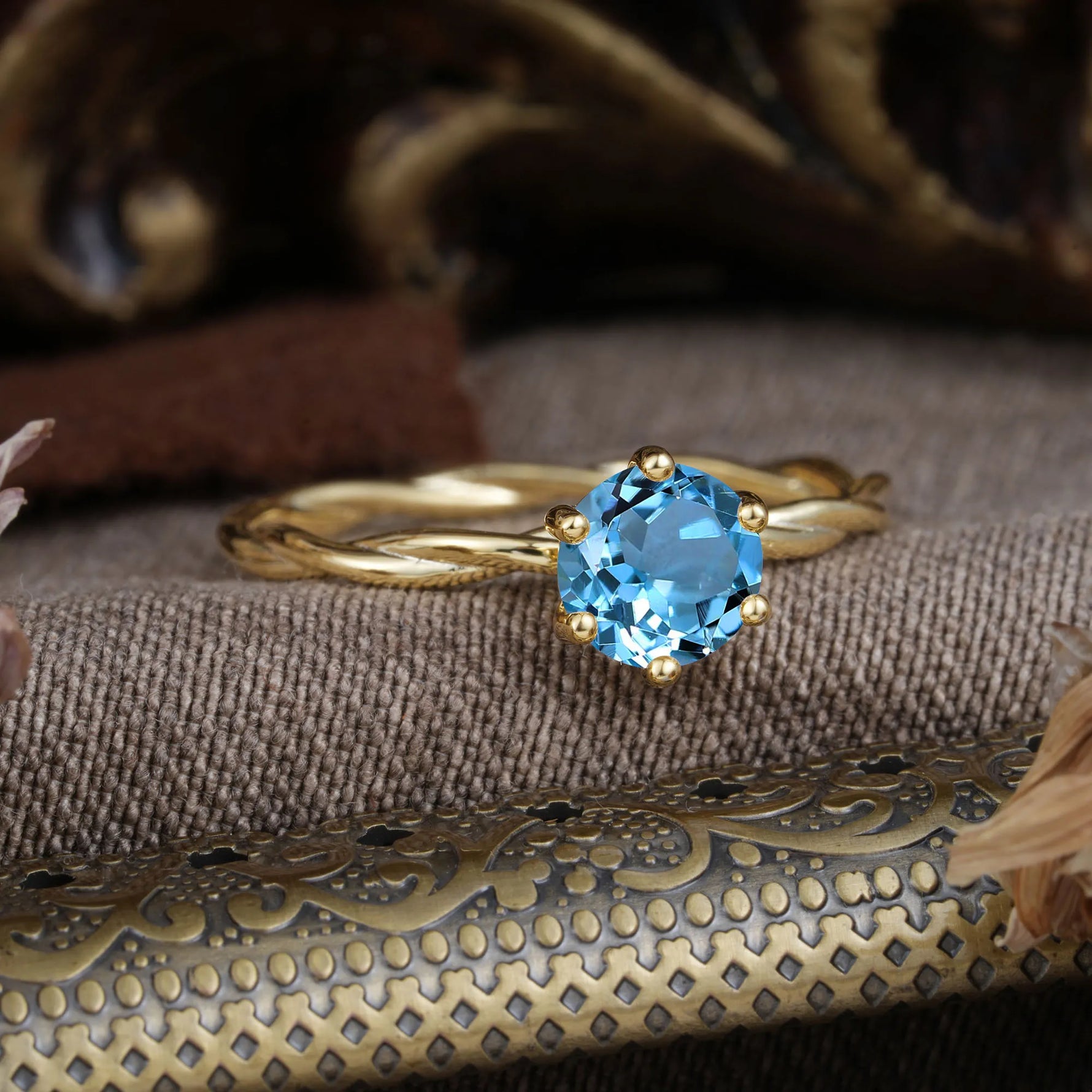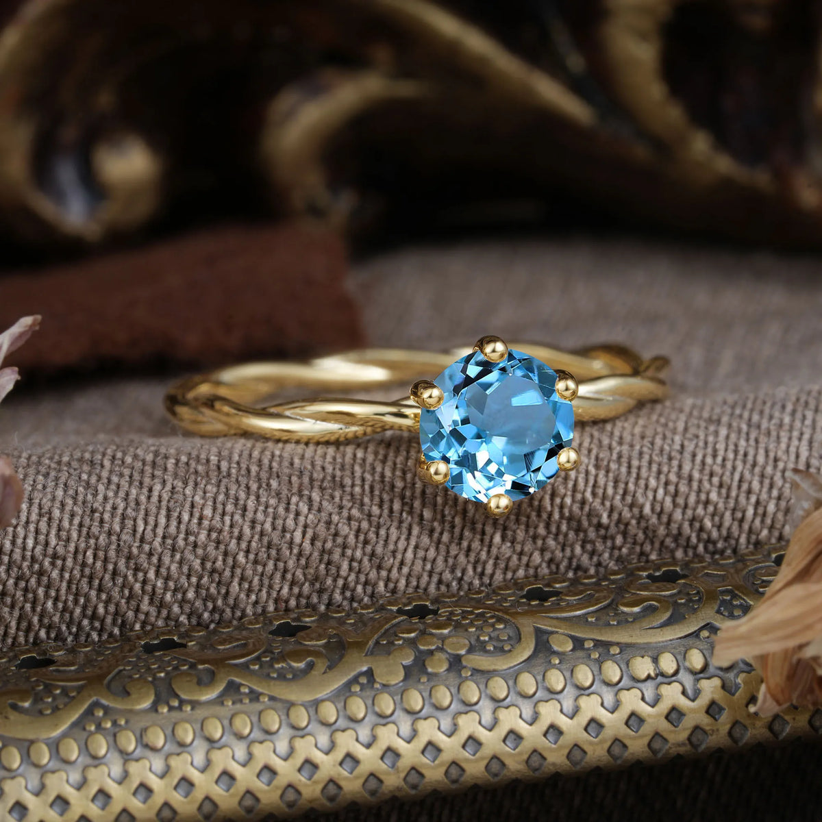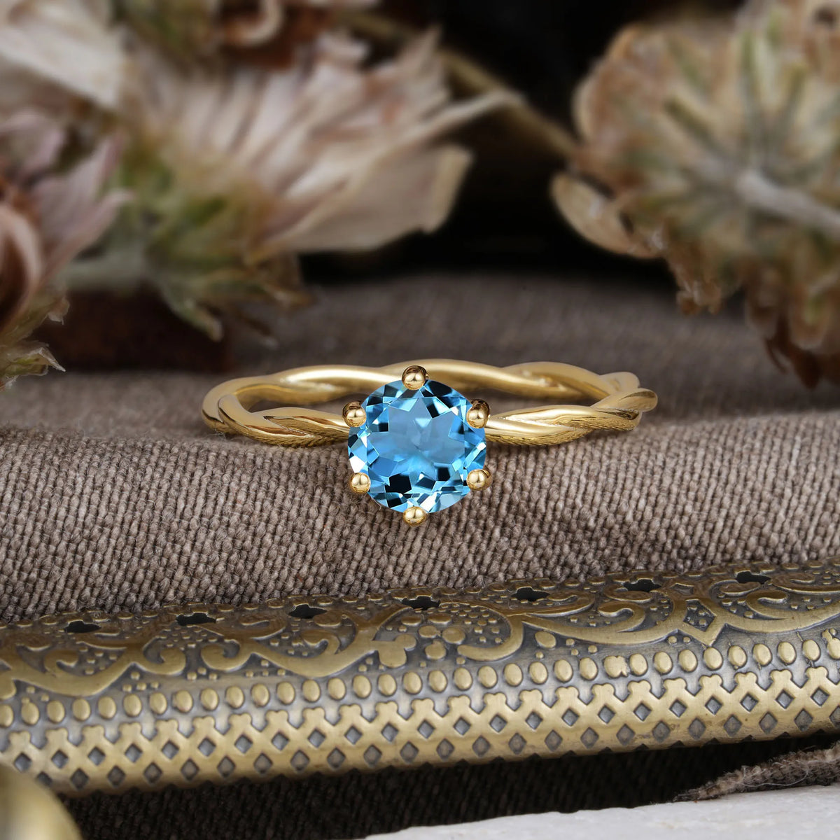 Round Cut Aquamarine Timeless Solitaire Engagement Ring with Twisted Band