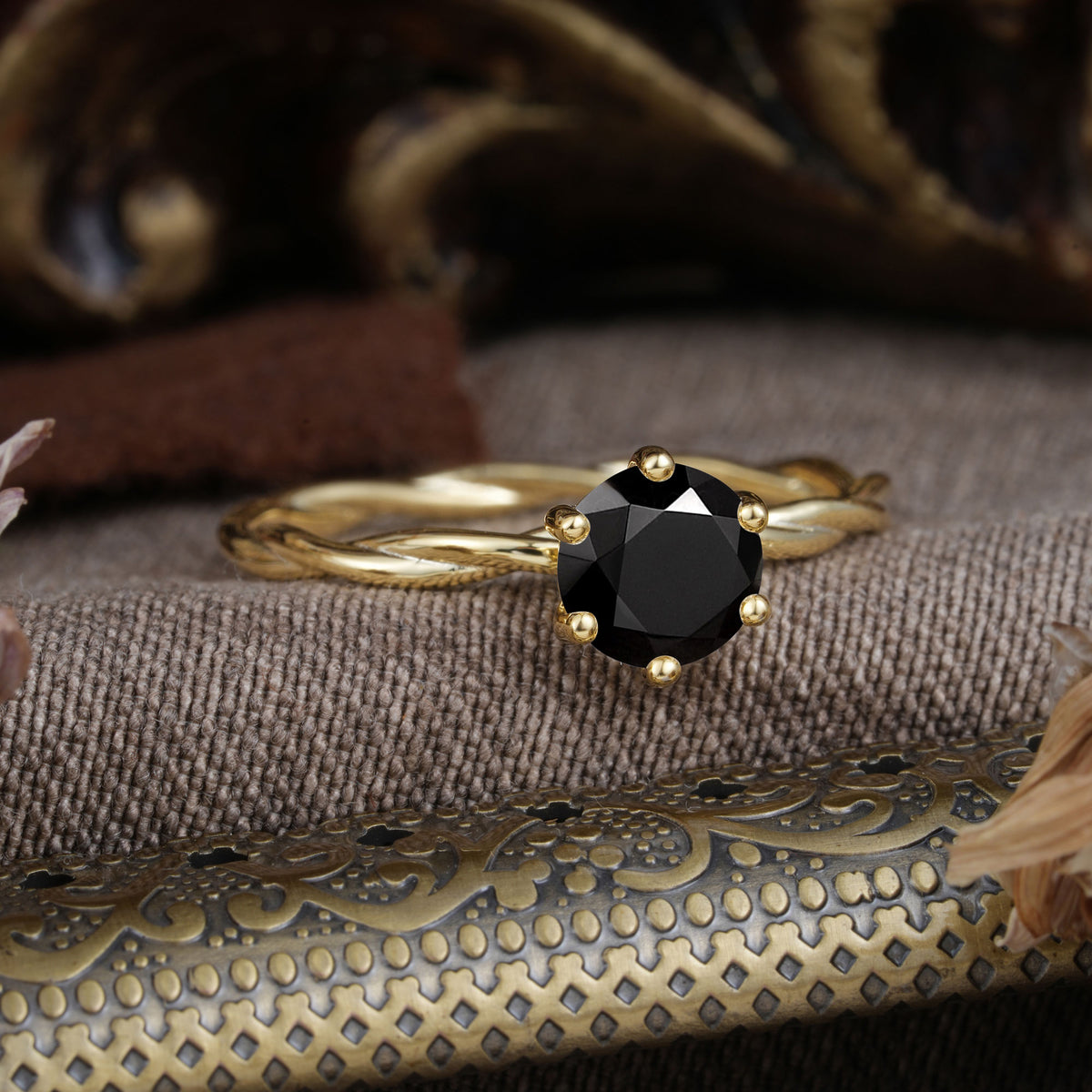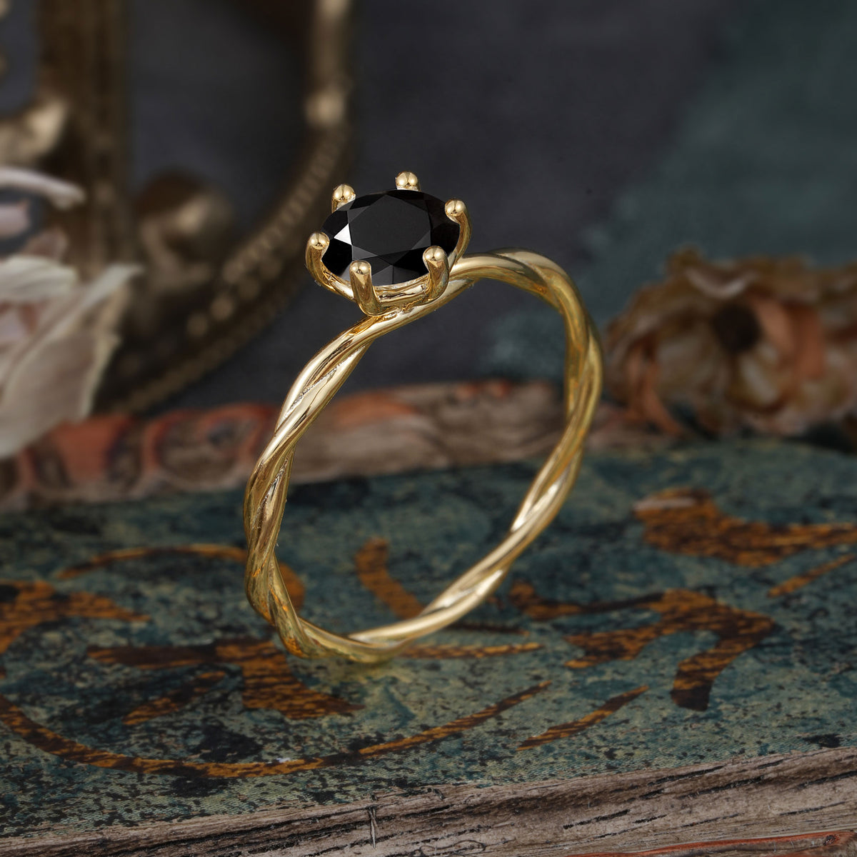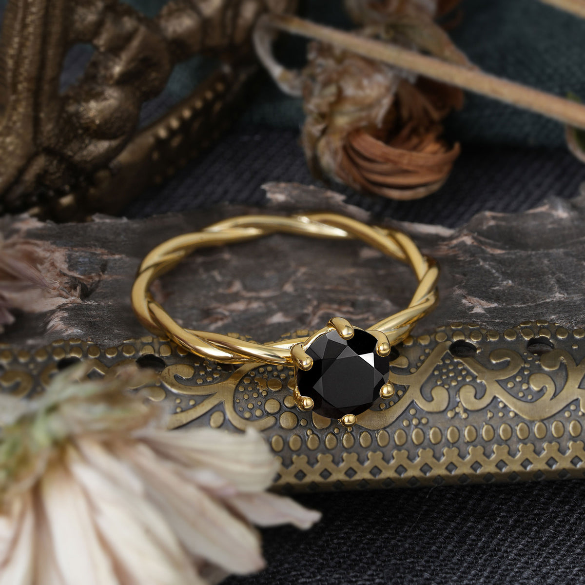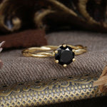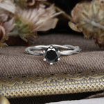Round Cut Black Onyx Timeless Solitaire Engagement Ring with Twisted Band