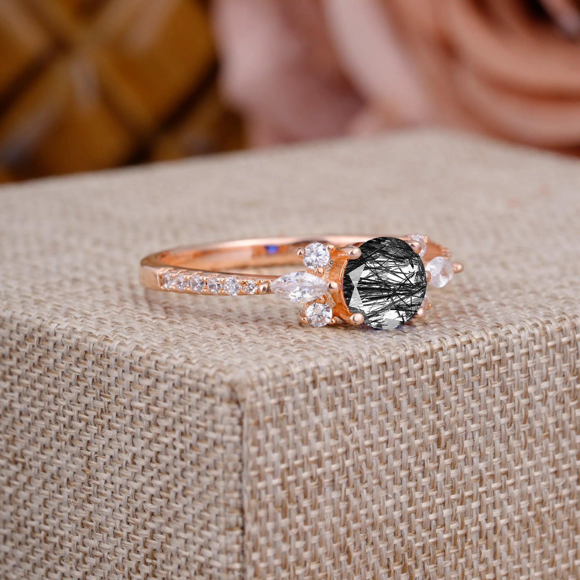 | Stone Material: Black Rutilated Quartz | Stone Material: Moissanite |