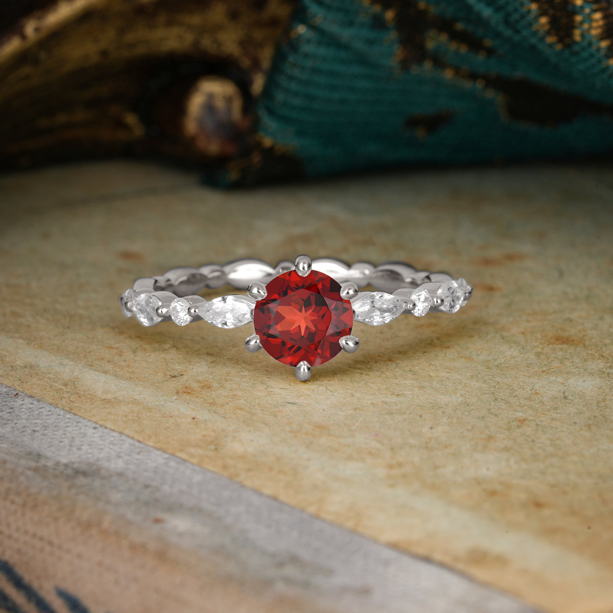 Round Cut Classic Side Stone Garnet Promise Engagement Ring