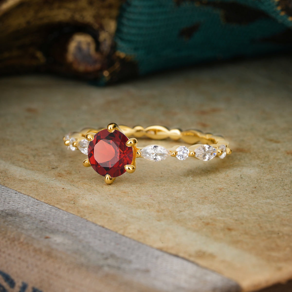 Whether worn alone or stacked with other rings, a garnet ring adds character and individuality to modern and vintage-inspired styles.